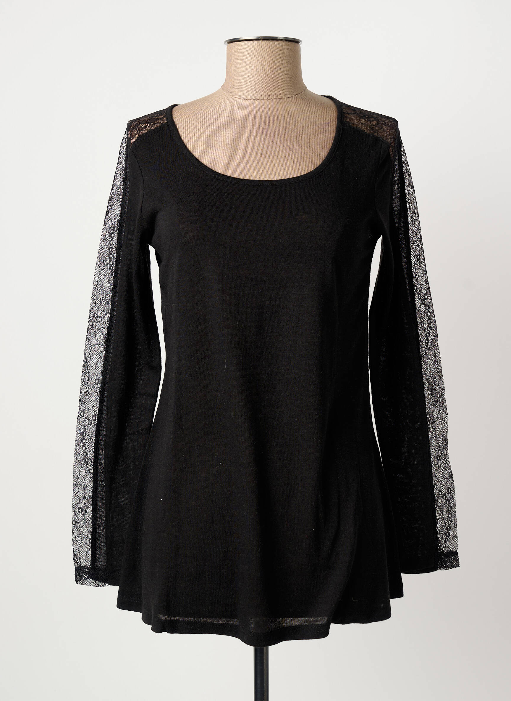 Profitez d’un bon plan mode avec ce T-shirt BY MO pour femme qui combine élégance et économies, parfait pour celles qui veulent se faire plaisir sans se ruiner. Son design chic tout en noir est rehaussé par des manches longues transparentes à effet dentelle, qui apportent une touche féminine et sophistiquée à la silhouette. Ce modèle est idéal pour accompagner aussi bien une tenue décontractée en journée qu’un look plus raffiné en soirée, sans compromis sur le prix.