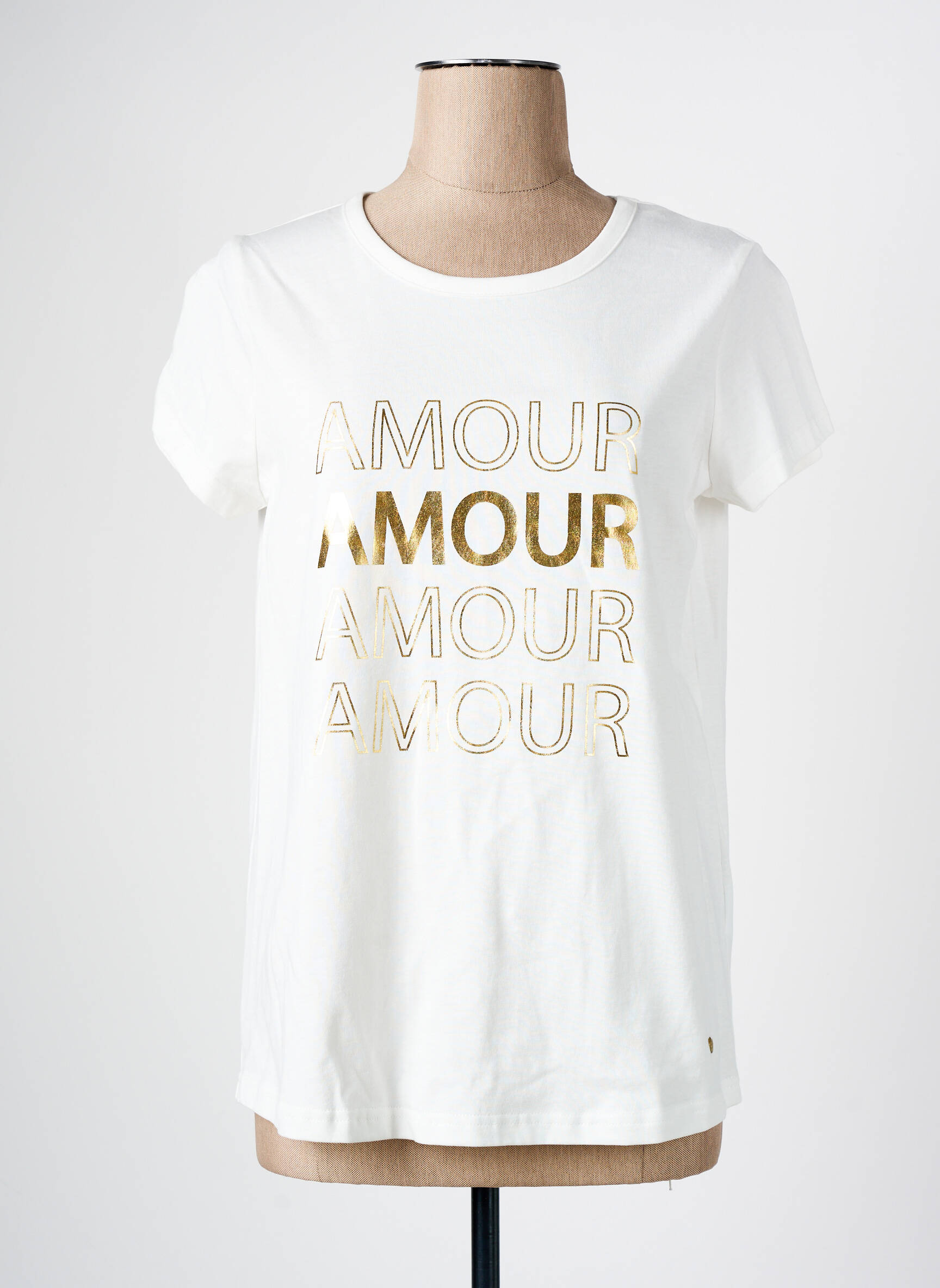 Ce T-shirt C’EST BEAU LA VIE pour femme est un vrai bon plan à petit prix pour celles qui veulent adopter un look tendance sans se ruiner. Avec sa couleur blanche intemporelle et son imprimé doré « AMOUR » répété sur le devant, il apporte une touche lumineuse et décontractée à toutes vos tenues du quotidien. Sa coupe droite et son col rond en font un basique facile à porter, idéal pour dynamiser un jean ou une jupe avec style sans compromis sur le budget.