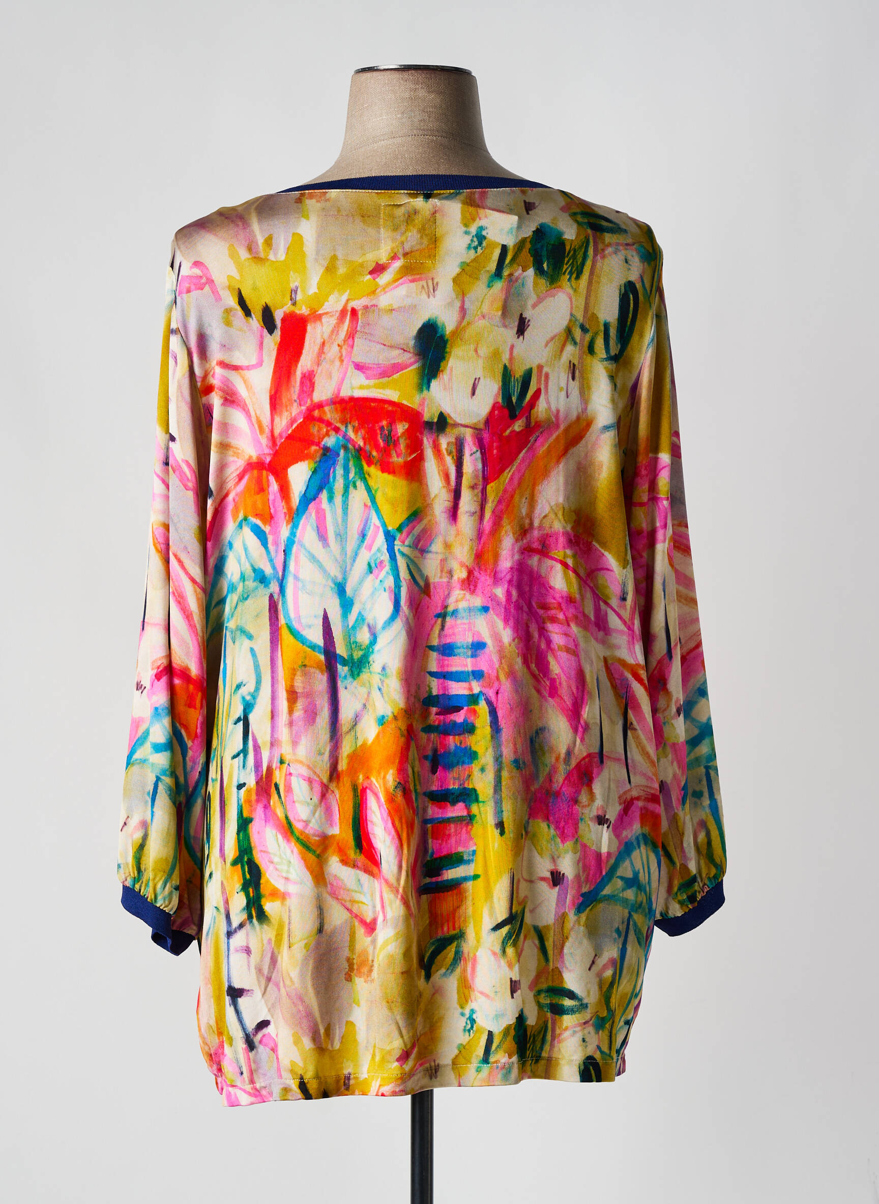 Saisissez l'opportunité de vous offrir ce superbe T-shirt femme de la marque CAP JULUCA à prix mini, idéal pour apporter une touche de couleur et d’originalité à votre garde-robe sans vous ruiner. Ce modèle séduit par son imprimé artistique et floral aux teintes vives, son encolure en V bordée d’un liseré contrastant bleu nuit et ses boutons délicats. La coupe ample assure un confort optimal au quotidien, tout en restant tendance et facile à porter. Profitez de cette pièce stylée à prix réduit pour dynamiser vos looks en toute simplicité.
