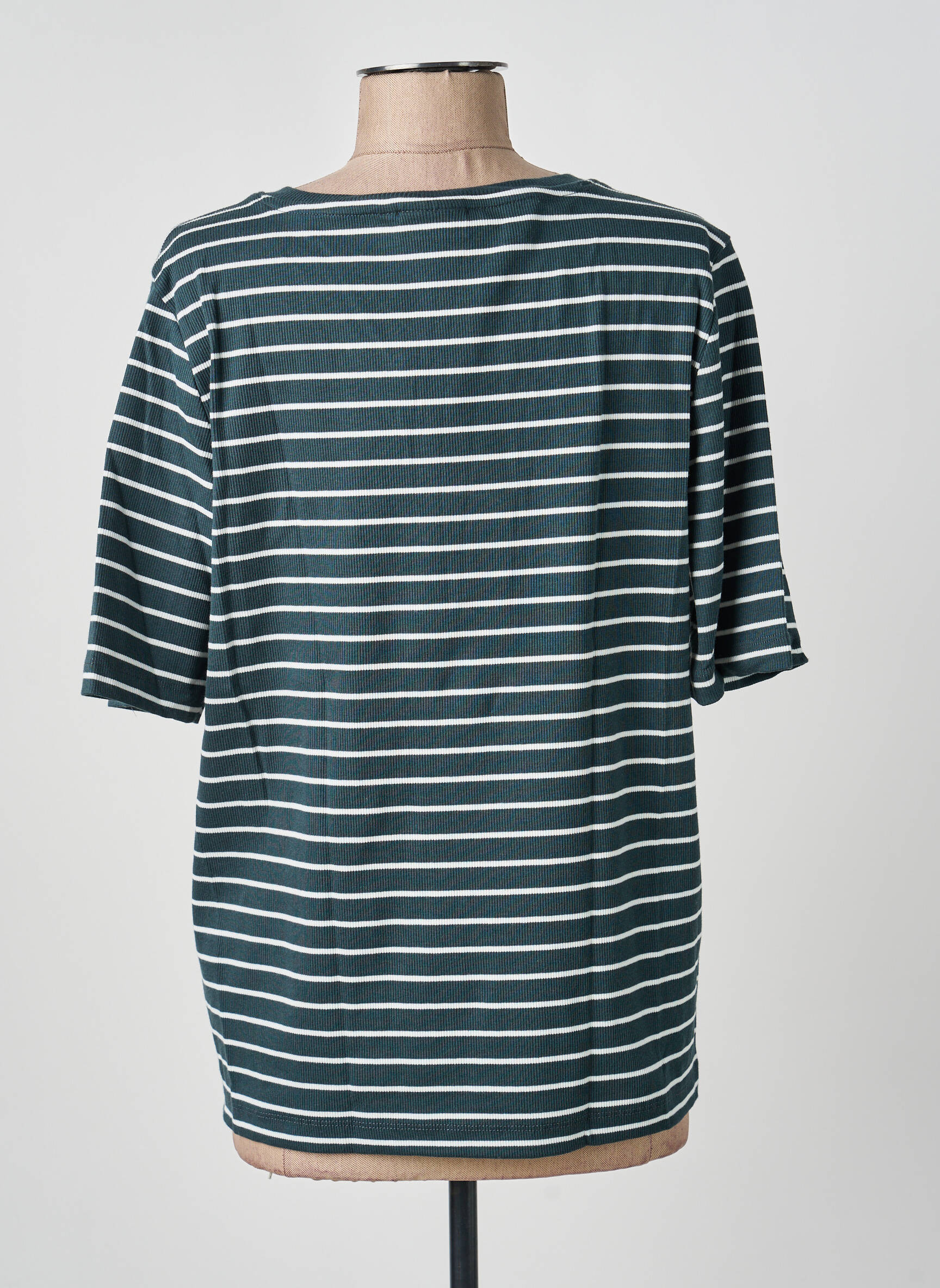 Ce T-shirt rayé s’intègre facilement dans une tenue casual avec un jean brut ou un short pour une allure estivale, mais il s’accorde aussi très bien avec un blazer pour un look plus soigné et moderne. On peut également l’associer à une jupe fluide ou à un pantalon ajusté, et ajouter une paire de baskets blanches ou des sandales pour finaliser l’ensemble. Quelques accessoires comme un sac bandoulière ou des bijoux fins viendront compléter le look tout en légèreté.
