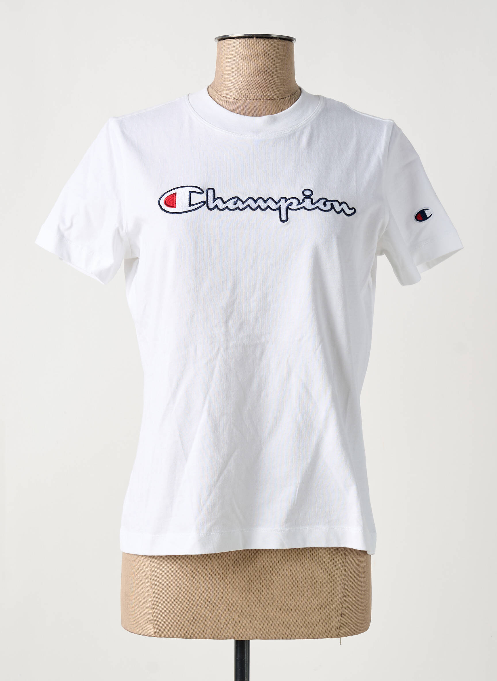 Craquez pour ce T-shirt Champion pour femme, un incontournable du vestiaire casual à prix mini. Son logo iconique s'affiche en grand sur la poitrine, offrant un look tendance et authentique sans compromis sur votre budget. Sa coupe classique, rehaussée d'une touche sportive sur la manche, accompagne toutes vos tenues du quotidien tout en profitant d'une vraie bonne affaire.