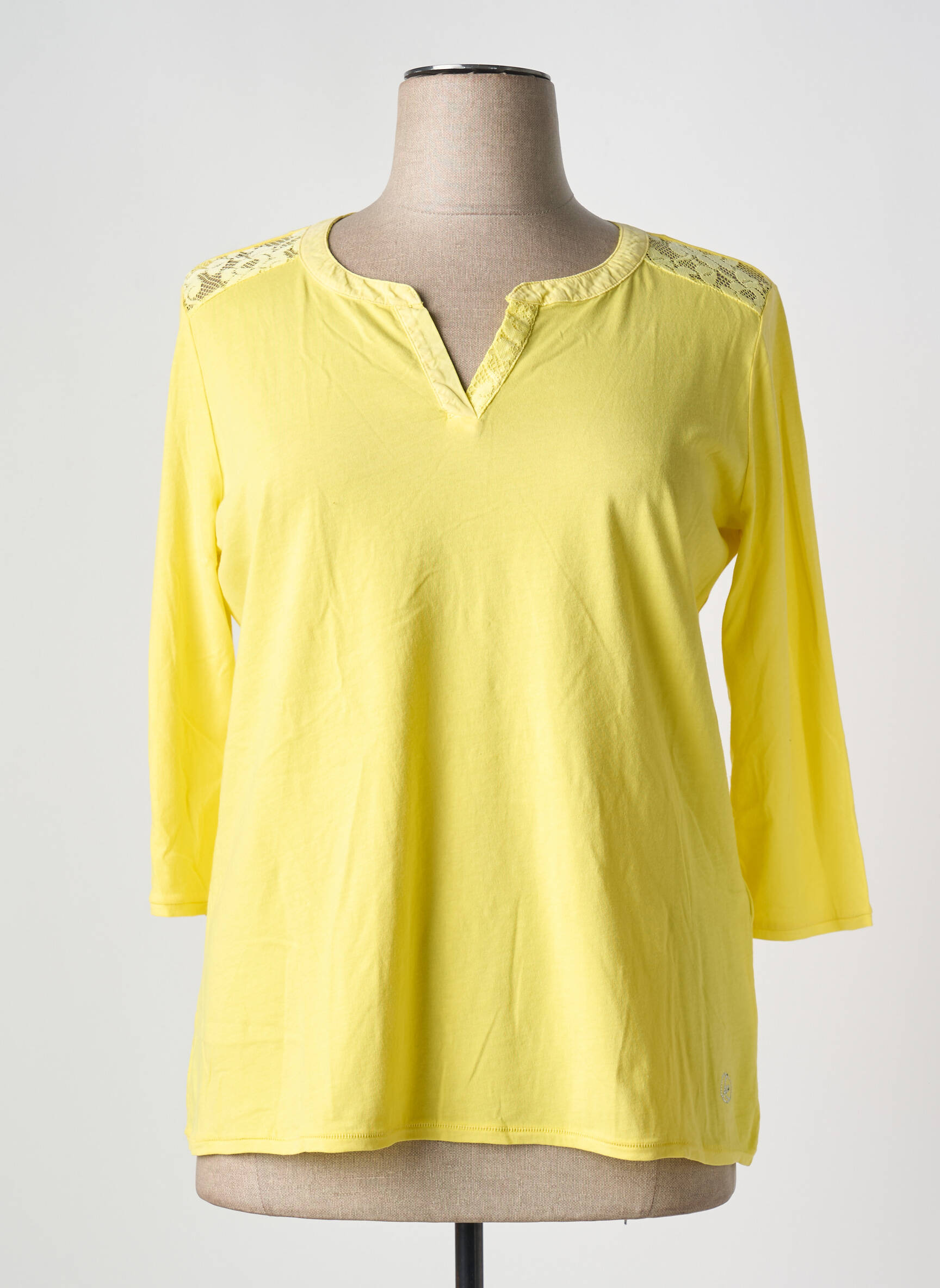 Voici le T-shirt pour femme de la marque CONCEPT K, une opportunité à saisir pour renouveler votre garde-robe à petit prix sans sacrifier le style. Avec sa coupe confortable et sa teinte jaune lumineuse, il apporte une touche de fraîcheur idéale pour la saison. Son encolure légèrement échancrée et ses empiècements délicats sur les épaules ajoutent une note féminine, tandis que ses manches trois-quarts assurent une allure décontractée et moderne. C’est le choix malin pour adopter un look tendance tout en faisant des économies.