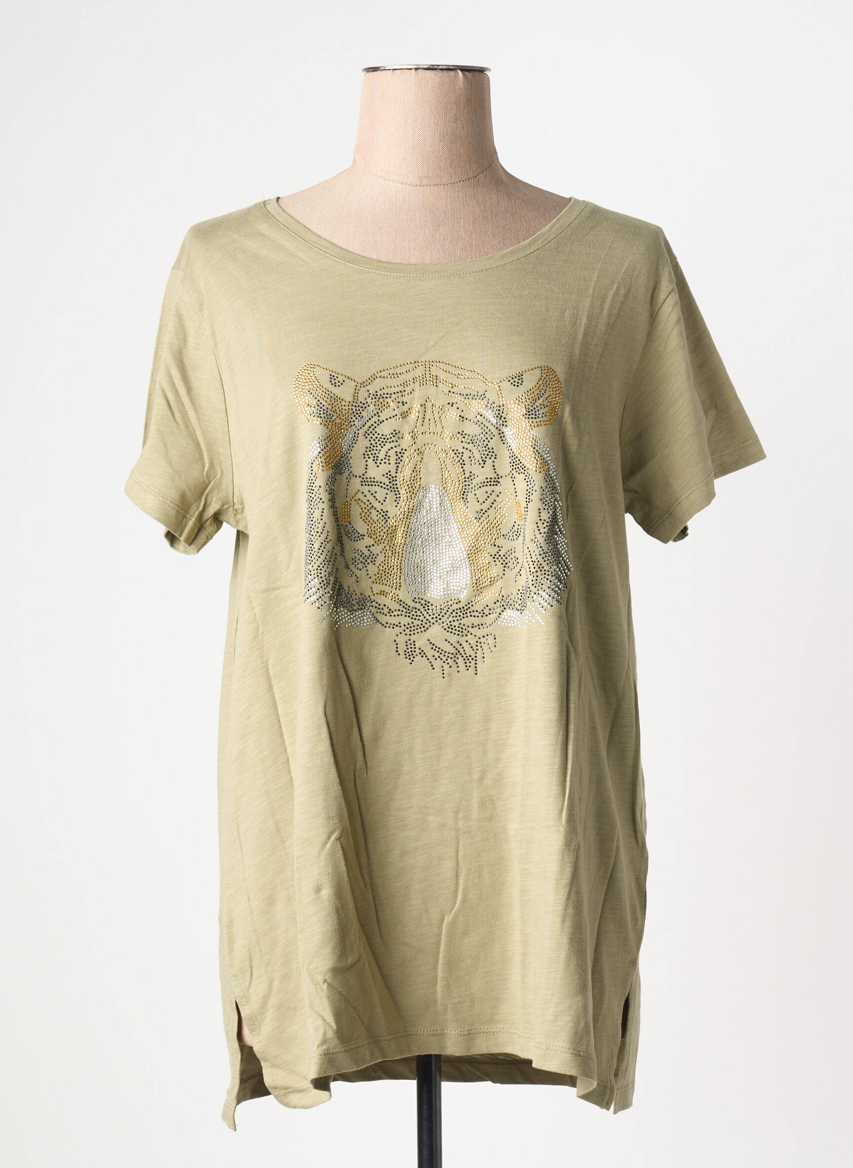 Profitez d’une vraie bonne affaire avec ce t-shirt CREAM pour femme, idéal pour ajouter une touche tendance à petit prix dans votre dressing. Son coloris kaki sobre est relevé par un motif tigre subtil et graphique sur le devant, qui lui donne du caractère tout en restant facile à associer avec votre garde-robe. Sa coupe fluide et légèrement plus longue à l’arrière assure un confort au quotidien, parfaite pour un style décontracté tout en faisant des économies sur un produit de marque.