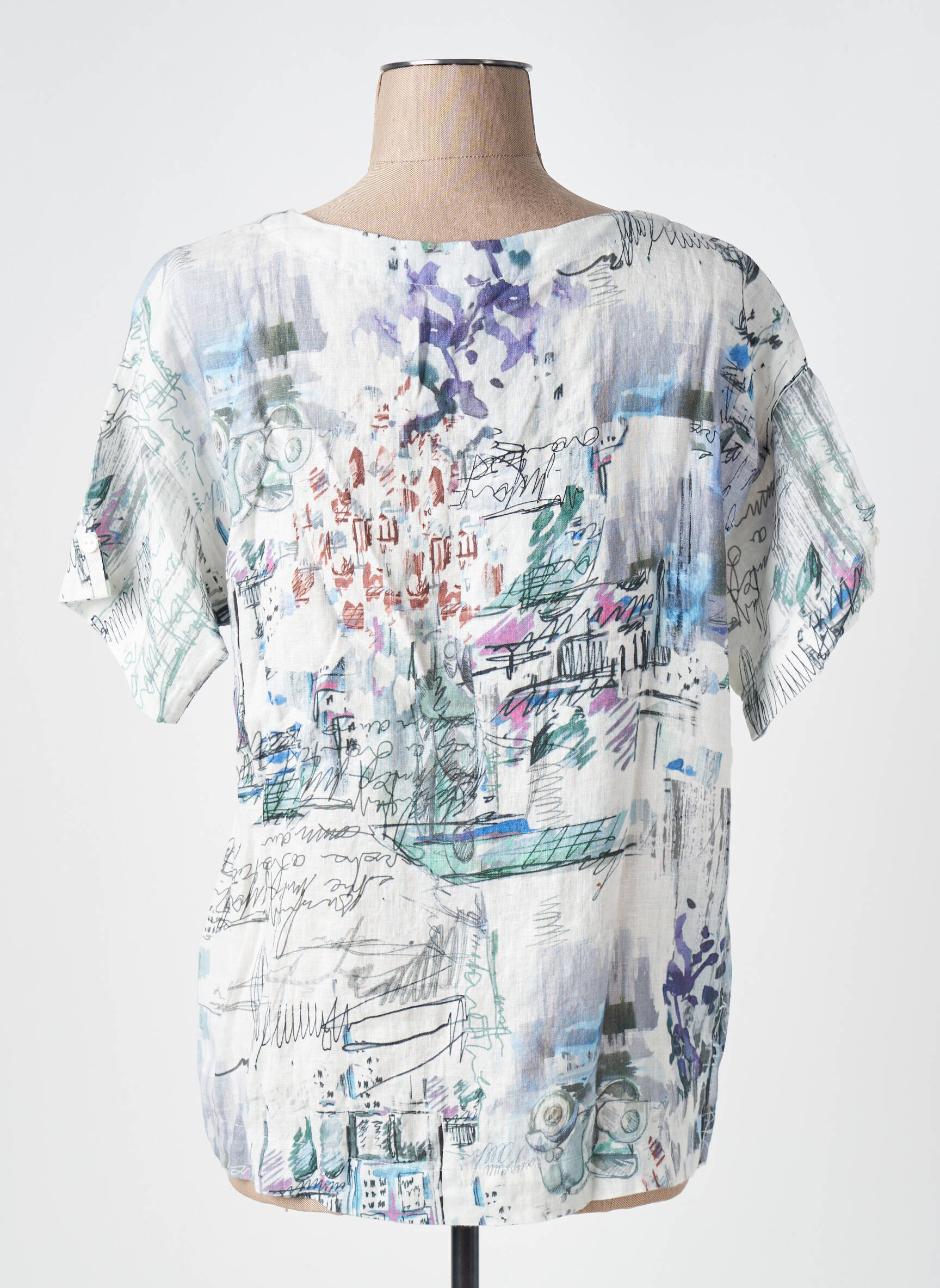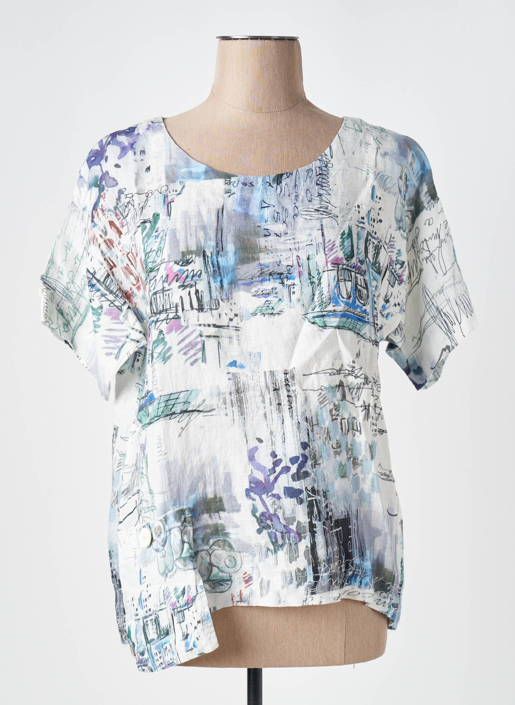Profitez d’une belle affaire avec ce T-shirt femme de la marque Dolcezza, une pièce originale à prix réduit qui ajoutera une touche arty à votre dressing. Son imprimé abstrait mêle des notes bleutées, violettes et vertes sur un fond clair pour un effet artistique et moderne, tandis que sa coupe fluide et son encolure ronde offrent un confort au quotidien. Ce haut pas cher est idéal pour dynamiser vos looks sans compromettre votre budget, un vrai bon plan pour celles qui aiment concilier style original et petits prix.