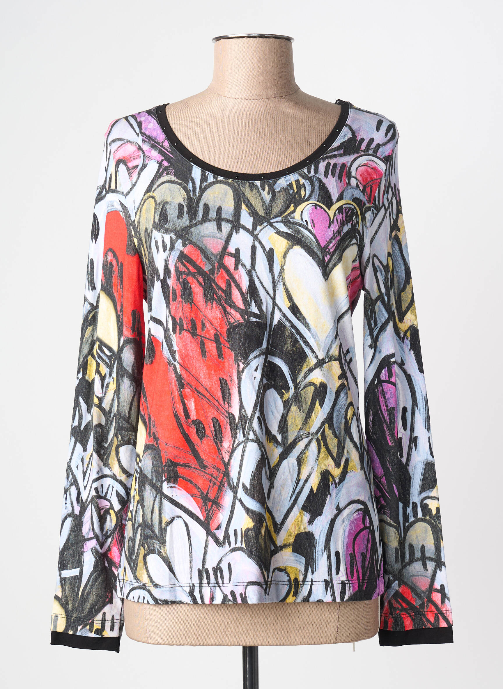 Craquez pour ce T-shirt femme signé Dolcezza, une pièce originale et colorée à petit prix qui apporte une touche artistique à votre garde-robe. Son motif graphique façon peinture mêle des teintes dynamiques de rouge, jaune, noir et blanc, parfait pour égayer toutes vos tenues tout en profitant d’une belle affaire mode.