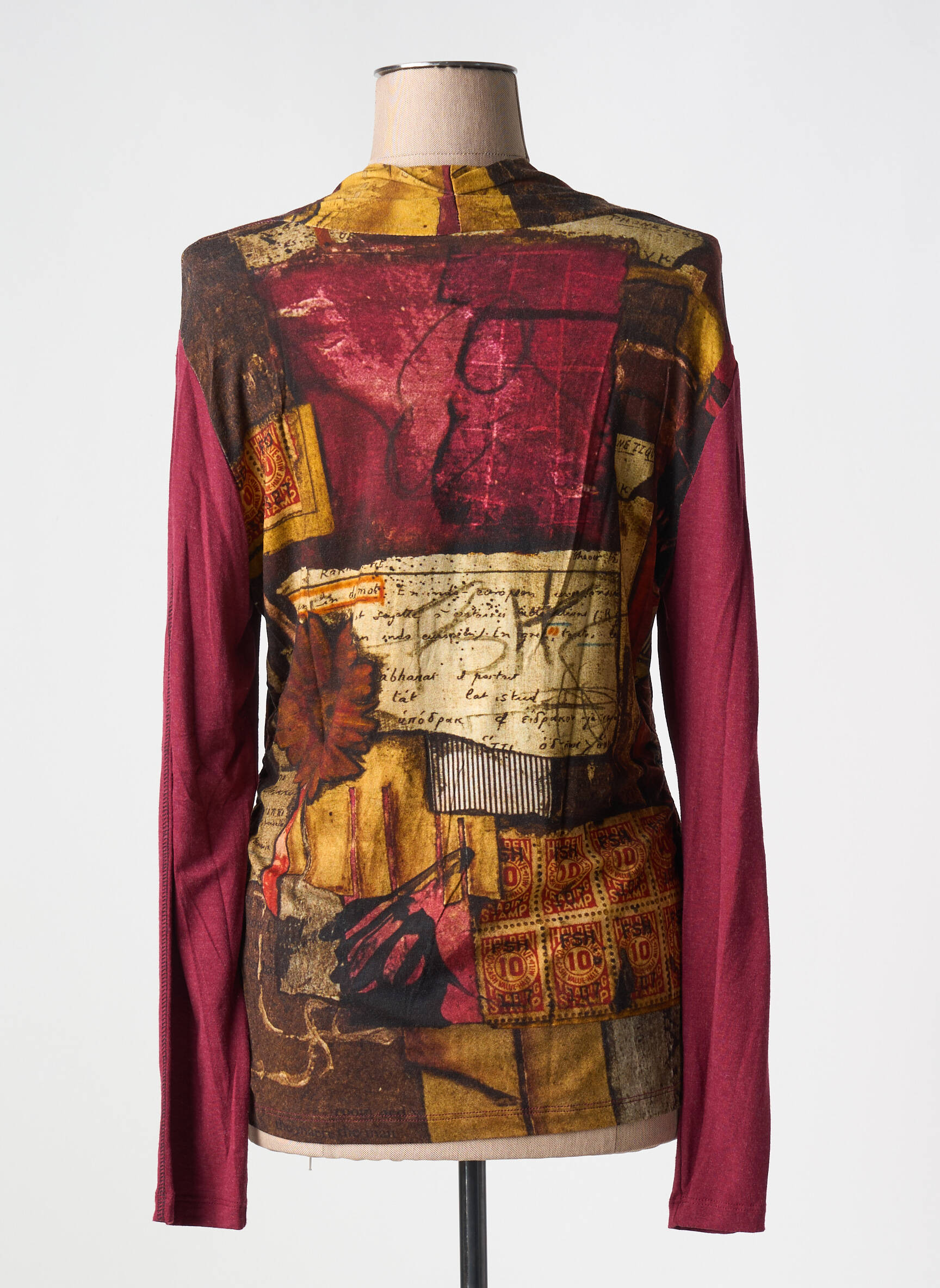 Craquez pour ce T-shirt femme Dolcezza à prix mini et donnez une touche artistique à votre garde-robe, grâce à son imprimé original aux inspirations abstraites et florales, rehaussé de teintes chaudes et profondes comme le bordeaux et le brun. Sa coupe flatteuse et ses manches longues contrastantes en font un allié parfait pour affirmer votre style avec élégance sans vous ruiner. Une belle opportunité de profiter d’un vêtement unique signé Dolcezza à petit prix !