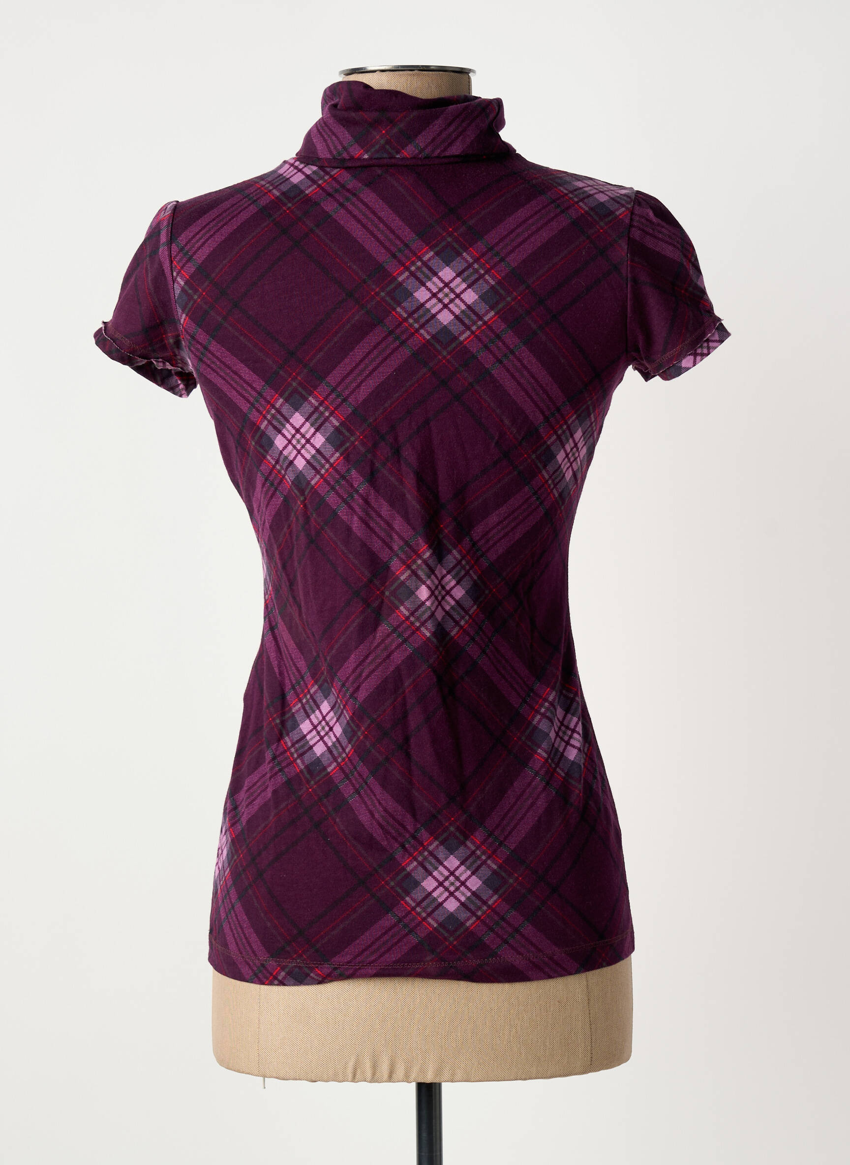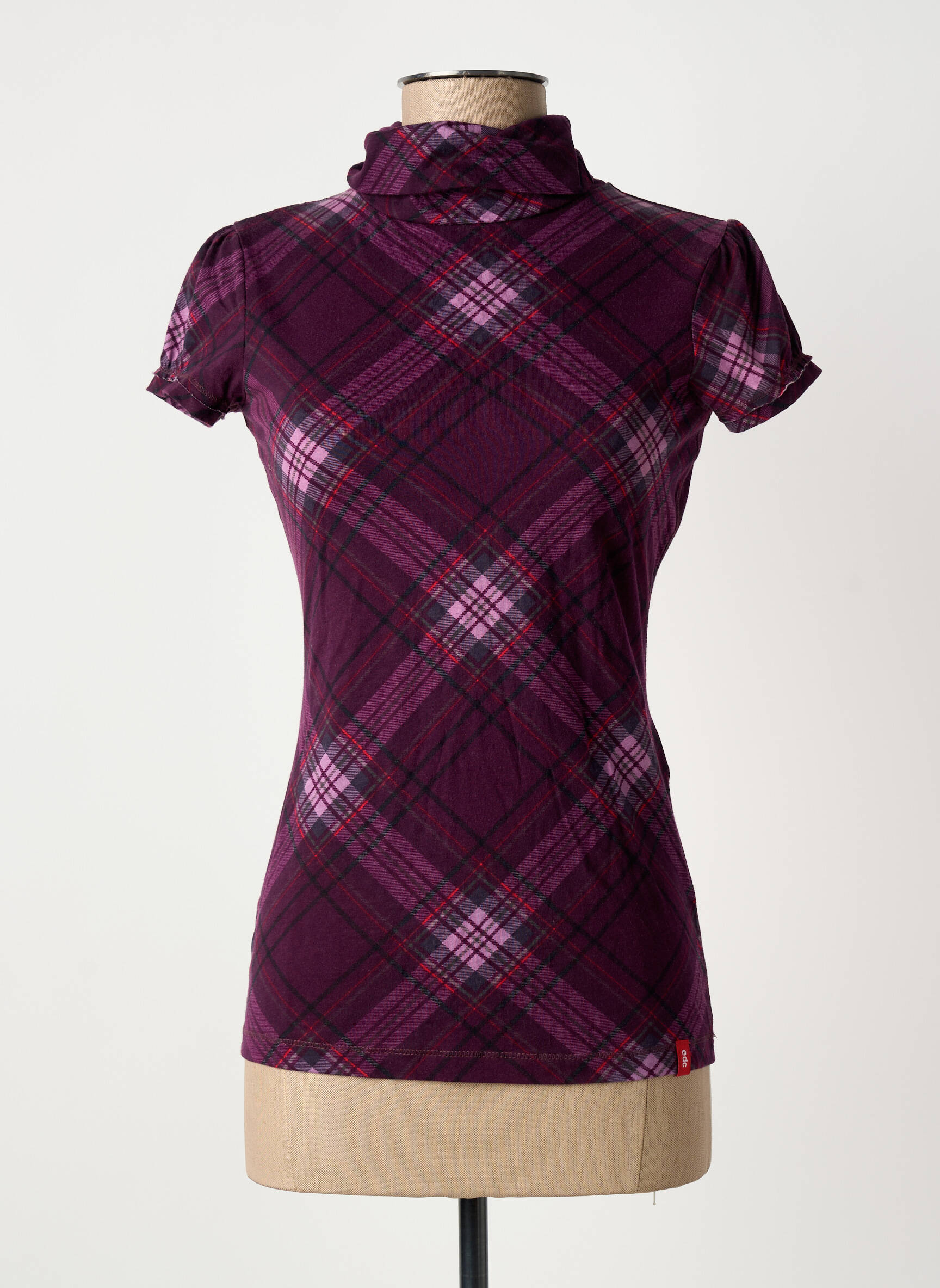 Offrez-vous une touche de style à petit prix avec ce T-shirt femme EDC BY ESPRIT, qui séduit par son élégant motif à carreaux dans des tons de violet et de rose, sa coupe près du corps et son col montant délicatement froncé, idéal pour dynamiser toutes vos tenues sans vous ruiner.