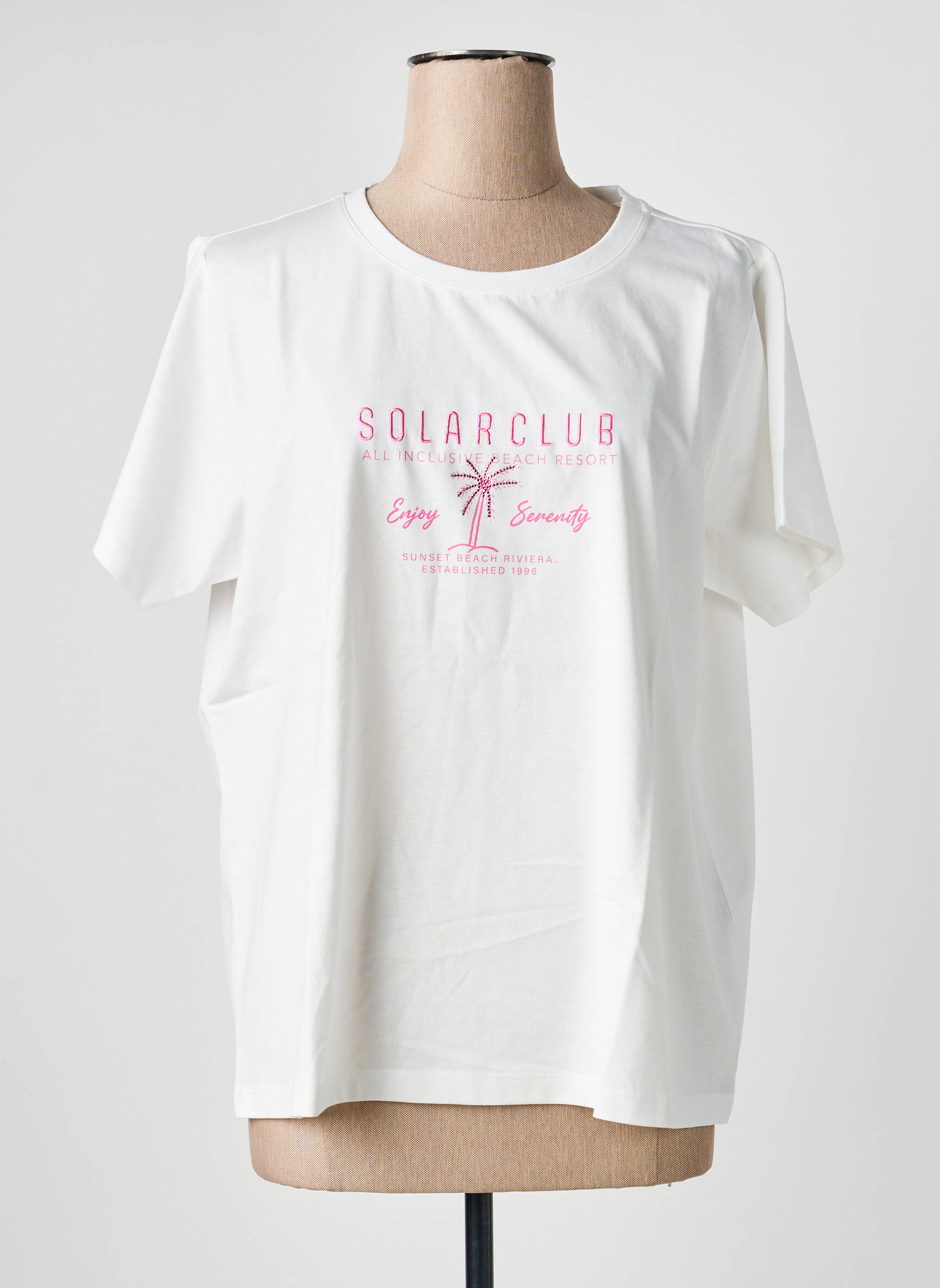 Ce T-shirt ESQUALO pour femme est une véritable affaire à saisir pour donner une touche tendance à votre dressing sans vous ruiner. Affichant une coupe confortable et un design casual, il séduit par sa couleur blanche lumineuse rehaussée d’un joli imprimé rose au centre, mettant en avant l’esprit “Solar Club” avec une ambiance estivale et décontractée. Ce modèle facile à porter s’associe à merveille avec un jean ou une jupe pour composer un look moderne à petit prix, idéal pour profiter d’une mode stylée sans compromis sur votre budget.