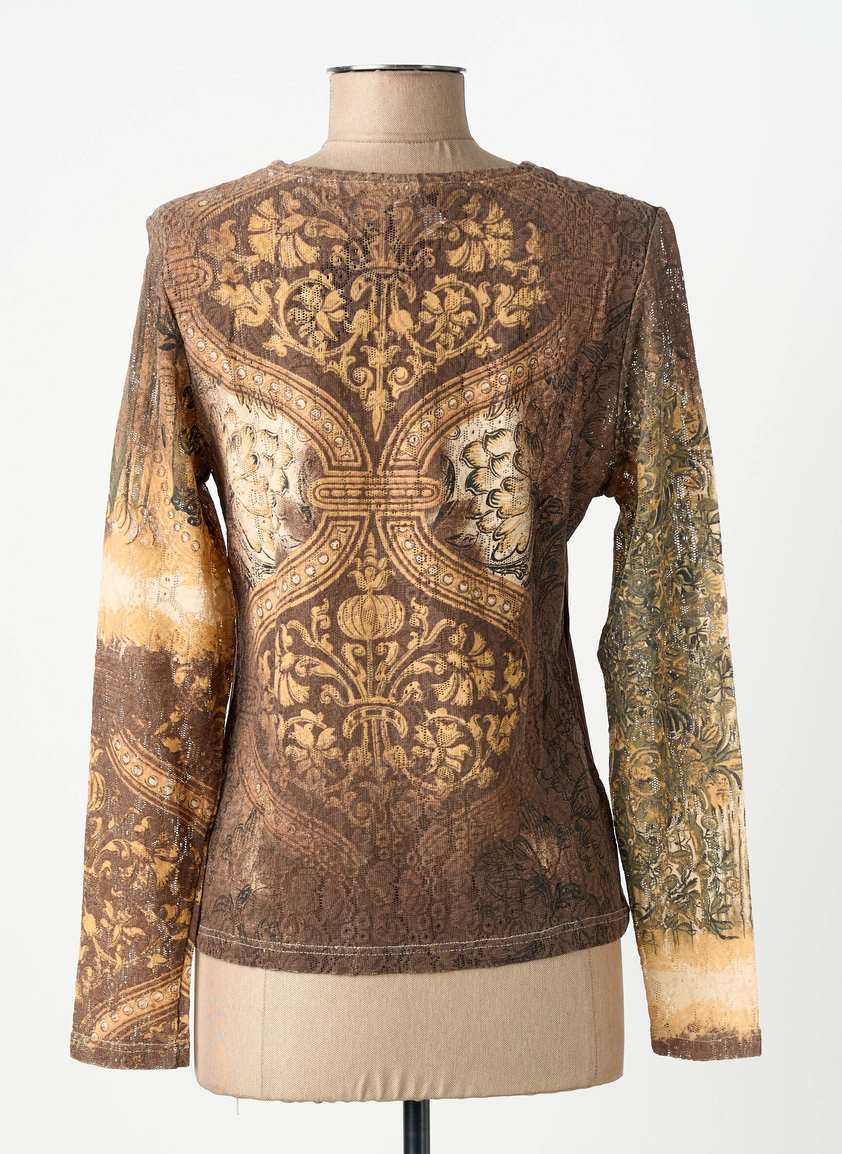 Craquez pour ce T-shirt FINETTE pour femme à prix mini, un véritable bon plan pour ajouter une touche d’originalité à votre dressing sans vous ruiner. Son motif baroque aux reflets dorés et bruns apporte une élégance unique et un côté très chic, tout en restant facile à porter au quotidien. Idéal pour celles qui veulent affirmer leur style avec une pièce forte sans compromis sur le budget, ce T-shirt promet un look raffiné et tendance à prix vraiment tout doux.
