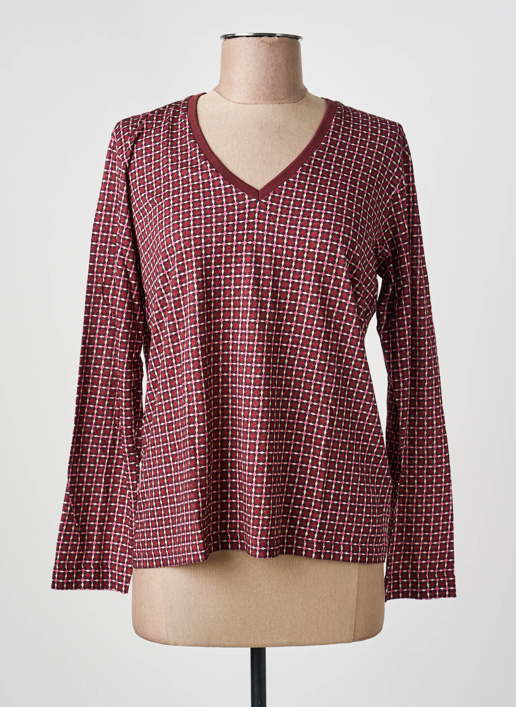 Profitez d’un bon plan mode avec ce T-shirt pour femme signé GERARD DAREL, un choix élégant à prix mini. Son imprimé graphique aux teintes rouges et blanches apporte une touche moderne et sophistiquée à toutes vos tenues, tandis que son col en V met en valeur le décolleté avec subtilité. Les manches longues et la coupe fluide garantissent un confort idéal au quotidien, parfait pour se faire plaisir sans se ruiner.