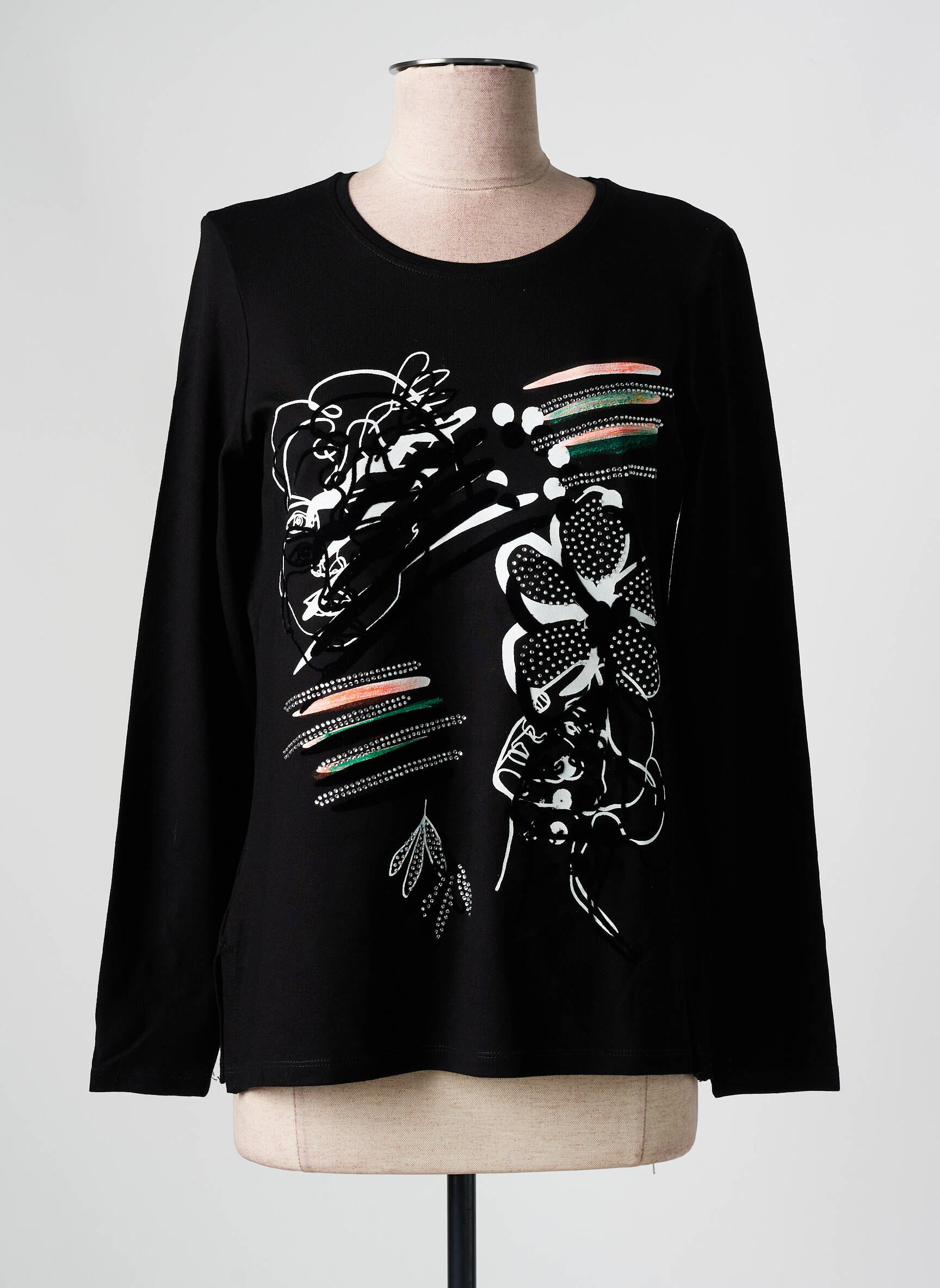 Profitez d'une offre exceptionnelle avec ce T-shirt GREGORY PAT pour femme, idéal pour allier style et petit prix. Son coloris noir rehaussé de motifs graphiques originaux, alliant détails blancs et touches colorées, apporte une touche moderne à votre garde-robe sans vous ruiner. Sa coupe confortable et ses manches longues en font un choix parfait pour un look décontracté tout en maîtrisant votre budget. Saisissez ce bon plan mode et donnez du caractère à vos tenues à prix mini !