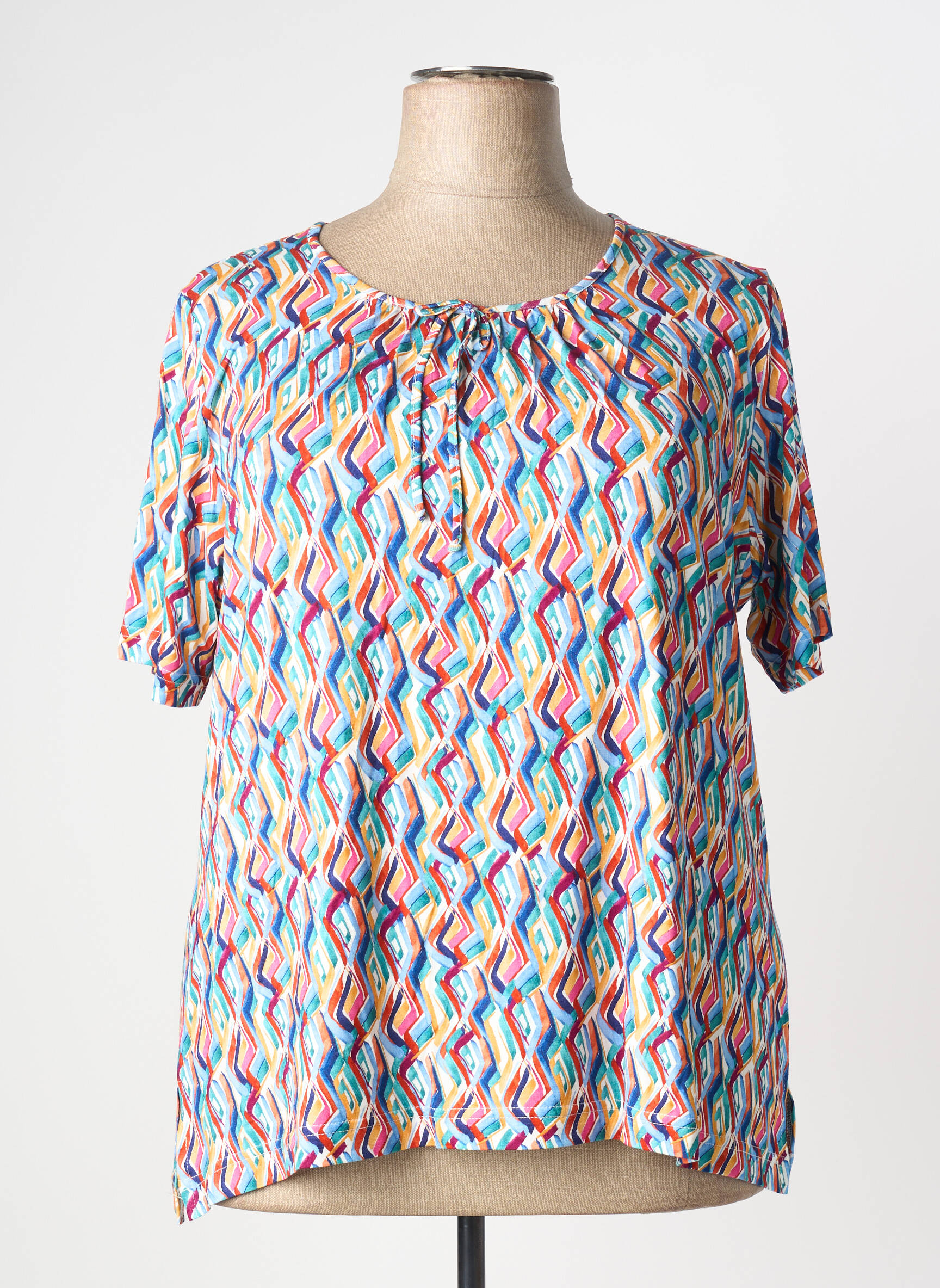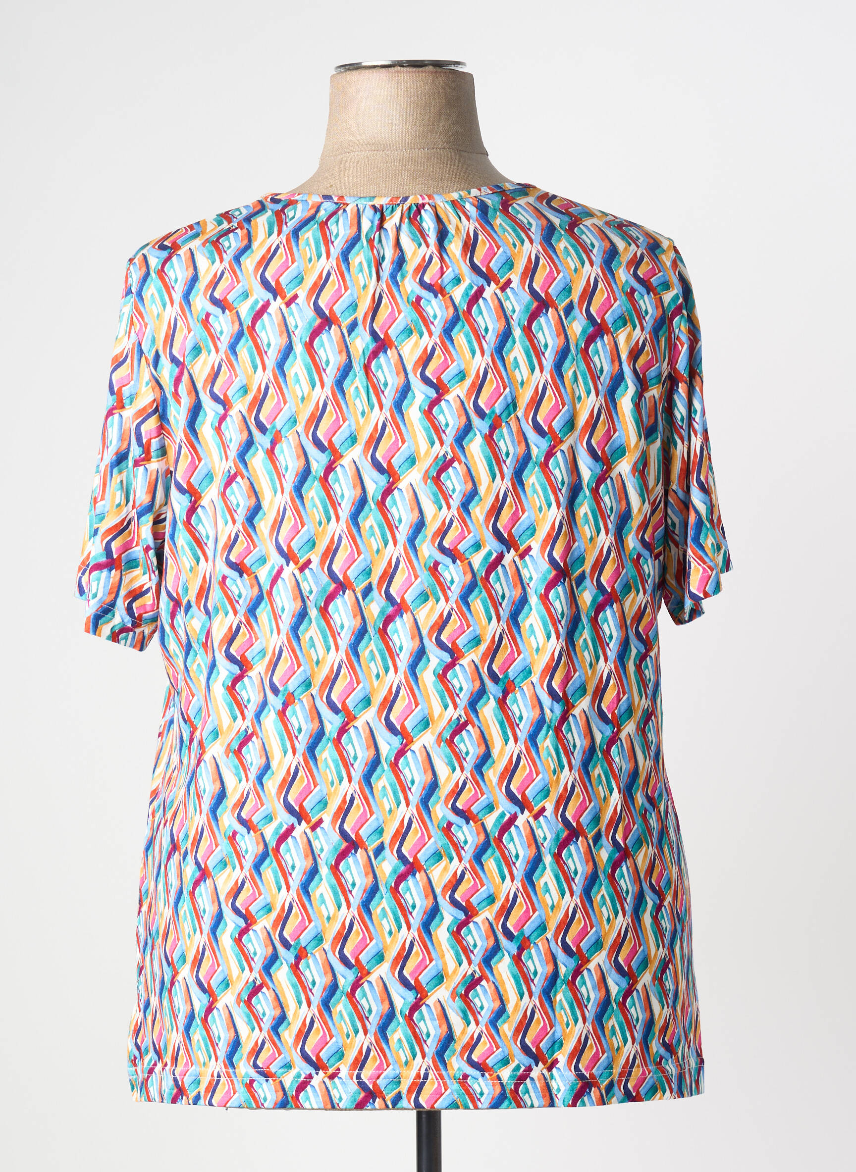 Voici une occasion à ne pas manquer pour ajouter une touche de couleur à votre garde-robe sans vous ruiner avec ce T-shirt pour femme de la marque Griffon. Son imprimé graphique multicolore ultra tendance apporte une note d’originalité et de fraîcheur à toutes vos tenues, tandis que sa coupe fluide et son encolure légèrement froncée assurent confort et modernité au quotidien. Profitez d’un style unique à prix tout doux, idéal pour faire rimer mode et économies.