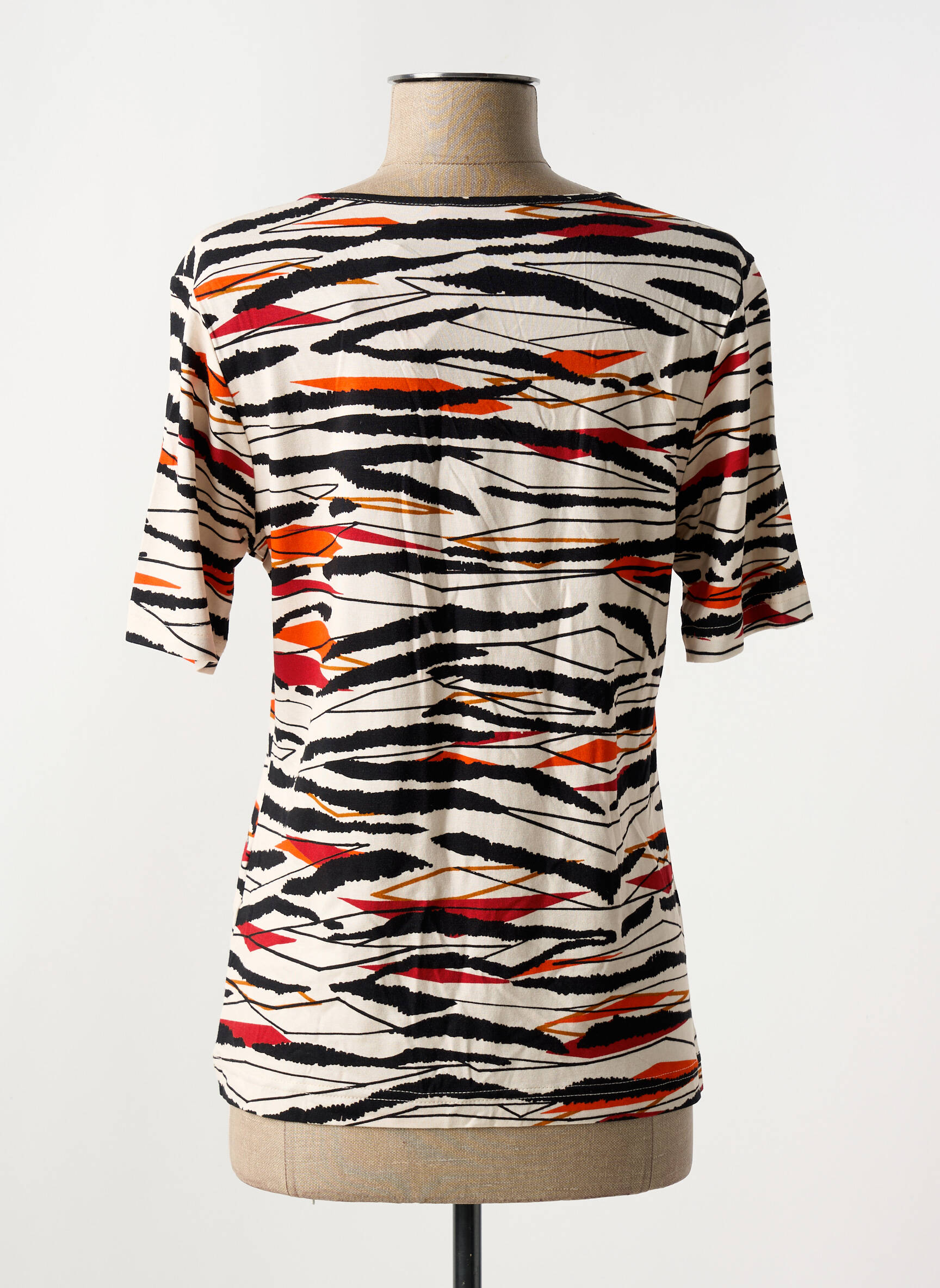 Profitez d’une occasion unique pour vous offrir ce T-shirt femme GRIFFON à prix réduit, idéal pour renouveler votre garde-robe sans vous ruiner. Craquez pour son imprimé zébré original mêlant des touches de noir, blanc, orange et rouge, parfait pour apporter du peps à vos tenues du quotidien. Sa coupe confortable et son joli décolleté arrondi agrémenté d’une découpe mode en font un basique moderne à petit prix qui se distingue par une touche d’originalité discrète.