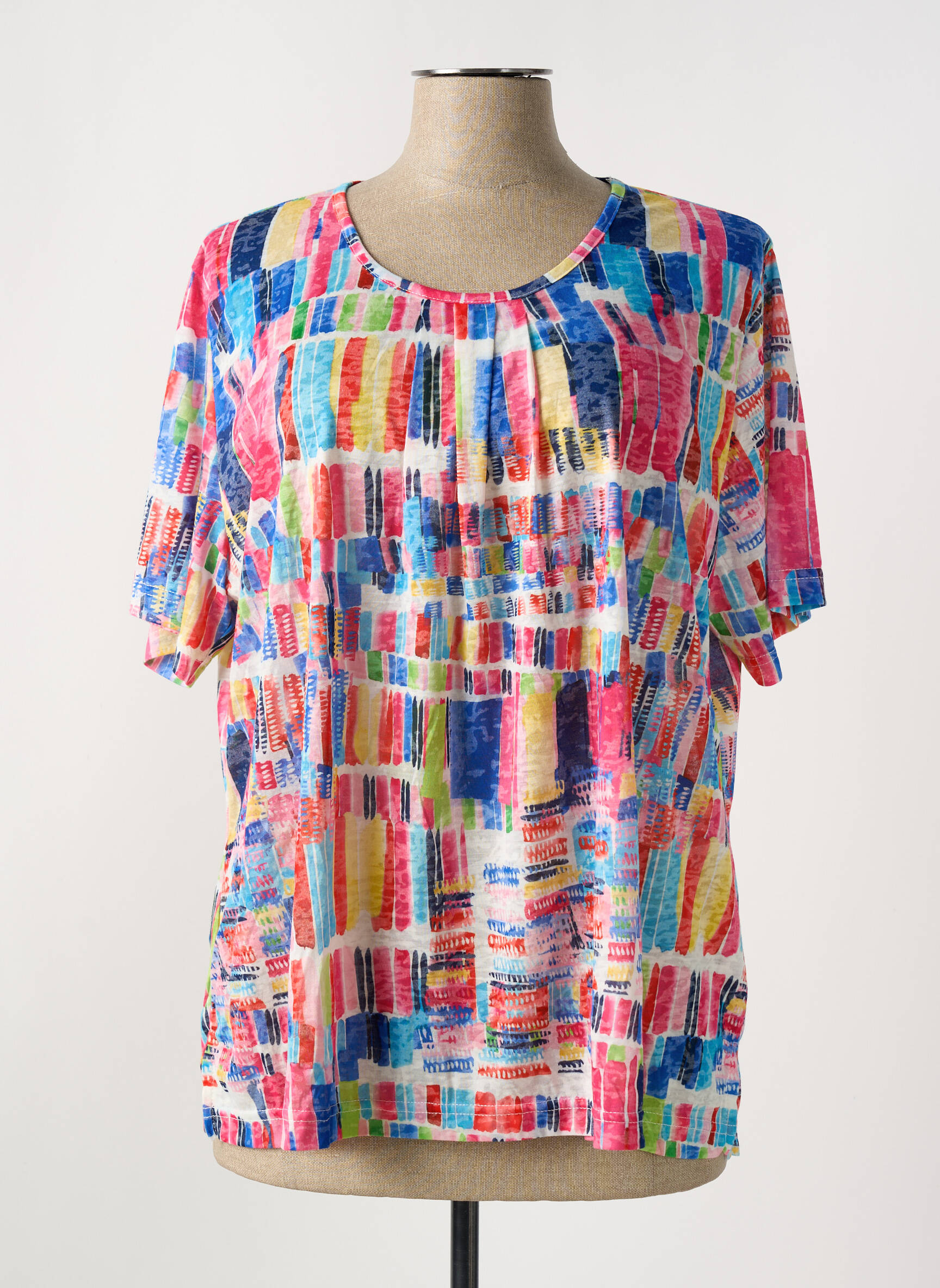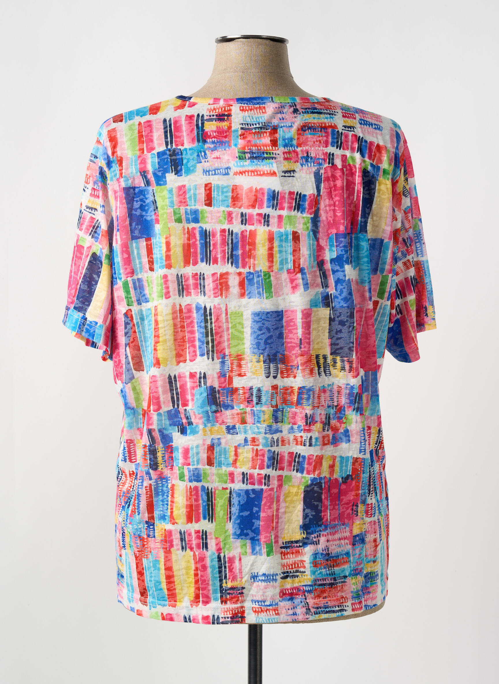 Profitez de ce bon plan pour égayer votre garde-robe avec ce T-shirt coloré de la marque GRIFFON pour femme, proposé à prix tout doux. Son imprimé graphique multicolore, plein de fraîcheur, apporte une touche de dynamisme à vos tenues, tandis que sa coupe ample et son encolure arrondie assurent un confort idéal au quotidien. Ce T-shirt est l’option parfaite pour se faire plaisir sans se ruiner !