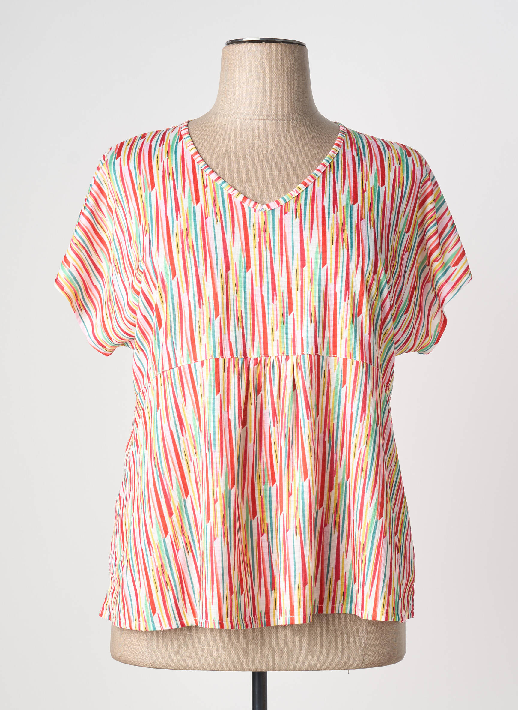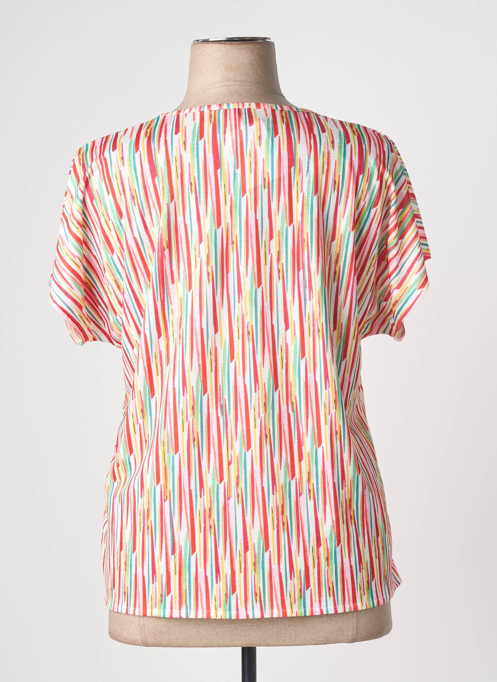 Profitez d’une offre exceptionnelle avec ce T-shirt femme de la marque GRIFFON, parfait pour ajouter une touche de couleur à votre dressing sans vous ruiner. Son motif multicolore dynamique, composé de fines lignes verticales, apporte fraîcheur et gaieté à vos tenues du quotidien. Sa coupe droite et fluide épouse naturellement la silhouette pour un confort optimal, tandis que le col en V met en valeur le décolleté avec discrétion. Facile à assortir et idéal pour la saison, ce T-shirt est le bon plan à ne pas manquer pour renouveler votre look tout en faisant des économies.