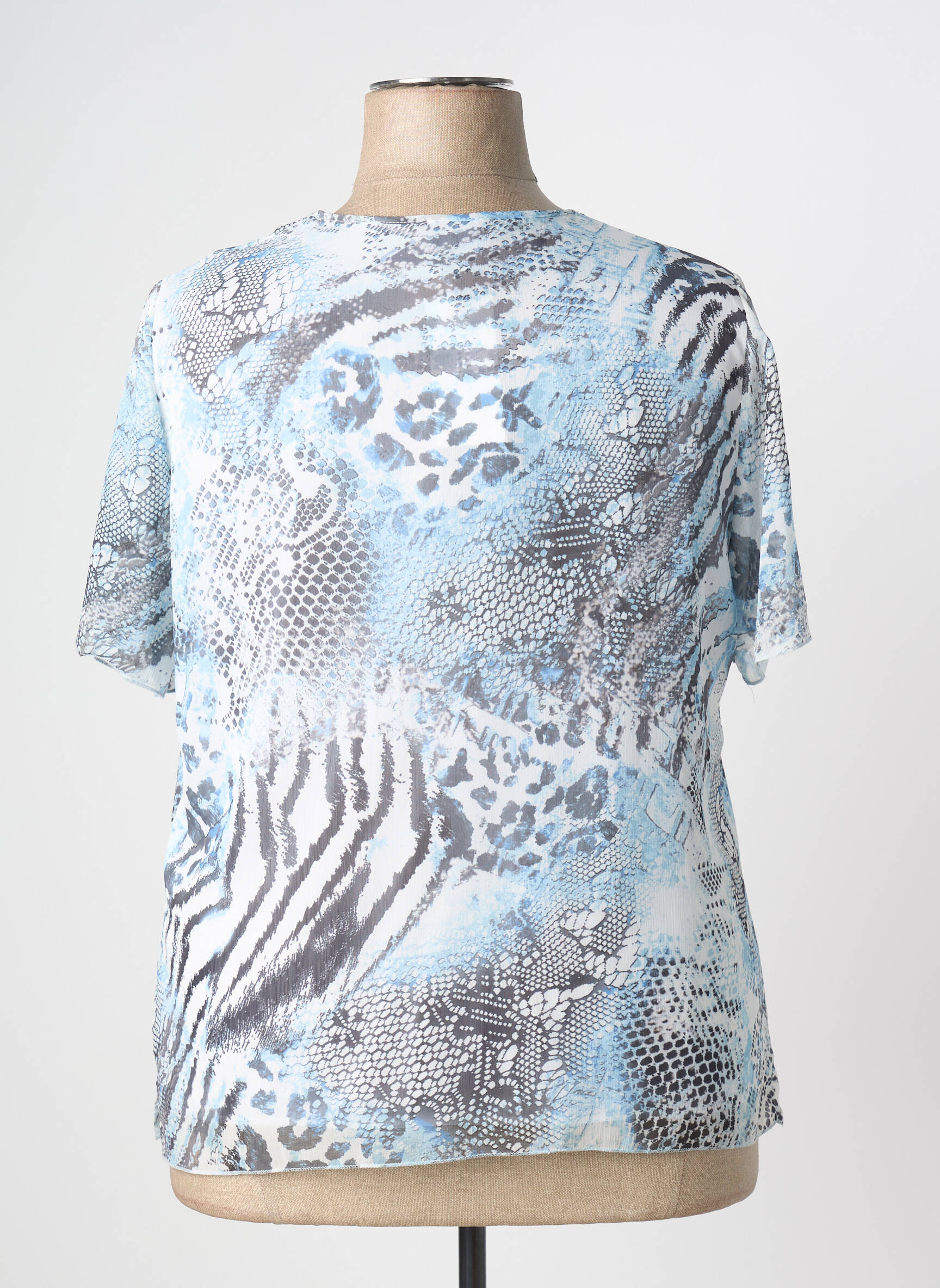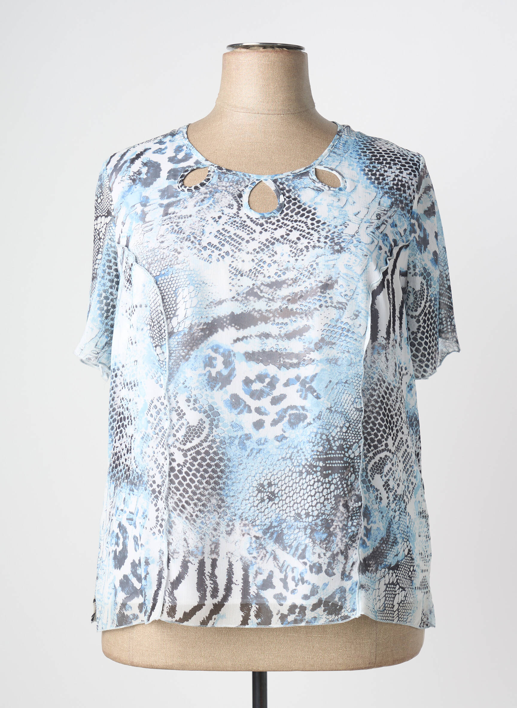 Profitez d’un vrai bon plan avec ce T-shirt pour femme de la marque GUY DUBOUIS, proposé à prix mini pour une allure tendance sans se ruiner. Son imprimé serpent aux nuances de bleu et de gris apporte une note chic et moderne à votre tenue, tandis que le détail ajouré au col ajoute une touche d’originalité discrète. Léger et agréable à porter, ce T-shirt est l’allié parfait pour composer des looks à la fois élégants et confortables, le tout à petit prix.