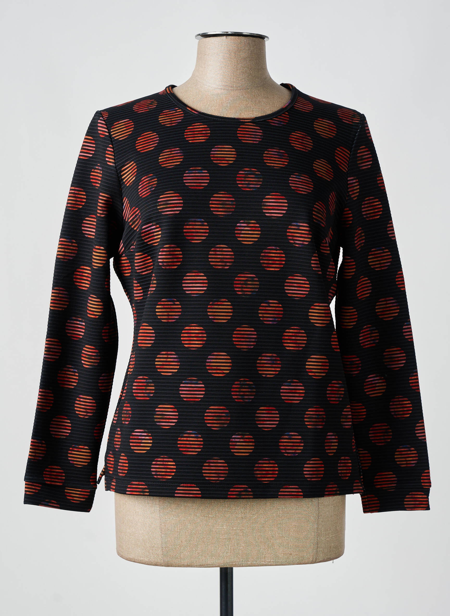 Profitez d’un vrai bon plan avec ce T-shirt pour femme de la marque GUY DUBOUIS, affichant un imprimé à pois multicolores sur fond noir qui apporte une touche graphique ultra tendance à votre tenue du quotidien. Sa coupe droite et ses manches longues en font un indispensable confortable et stylé, parfait pour dynamiser votre garde-robe à petit prix.
