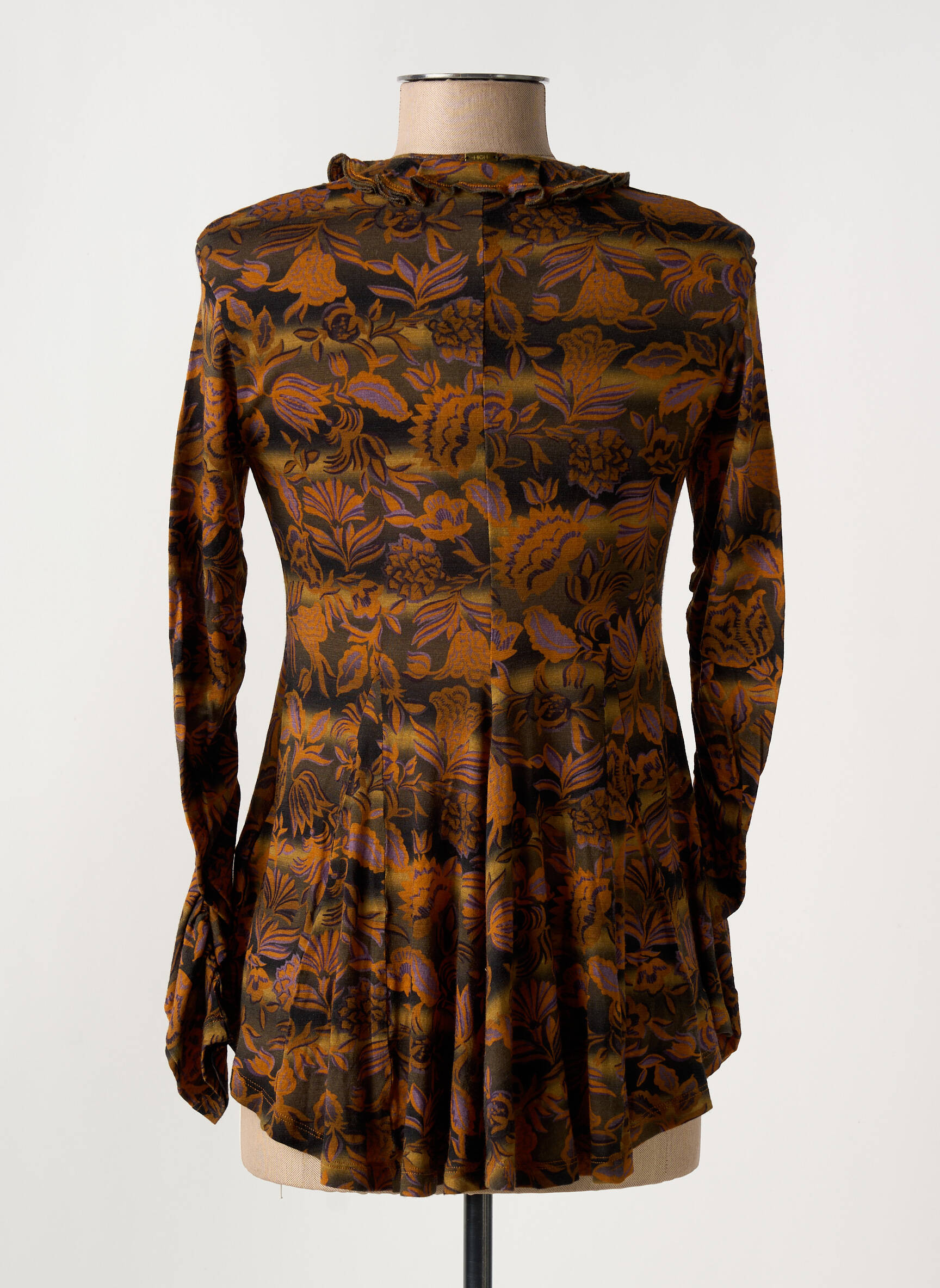 Profitez d’un bon plan mode avec ce sublime T-shirt de la marque HIGH pour femme, proposé à prix tout doux, qui séduit par son motif floral automnal dans des tons chauds de rouille et de noir, sa coupe fluide évasée à fronces flatteuses au niveau de la poitrine et ses manches longues légèrement bouffantes, parfait pour offrir une touche d’élégance originale à votre dressing sans vous ruiner.