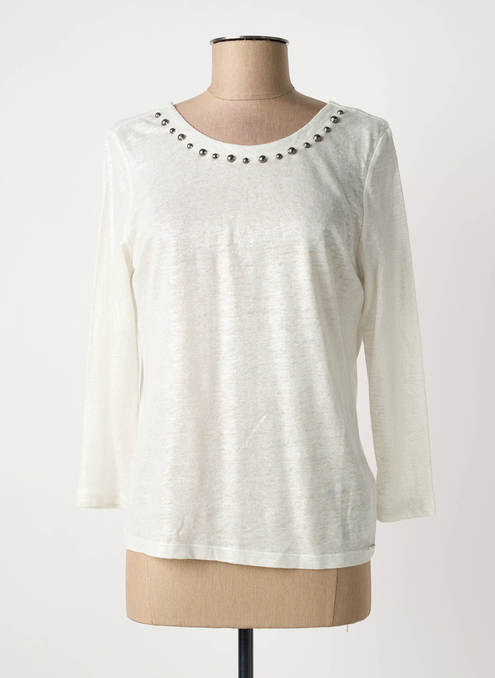 Découvrez ce T-shirt IKKS pour femme, une pièce incontournable à prix doux qui allie élégance et confort au quotidien. Son coloris blanc lumineux s'accorde facilement à toutes vos tenues, tandis que l’encolure décorée de petits œillets argentés apporte une touche d’originalité discrète et chic. Idéal pour une allure tendance sans se ruiner, ce T-shirt à manches longues deviendra rapidement votre allié pour composer des looks actuels tout en profitant d’une offre exceptionnelle.