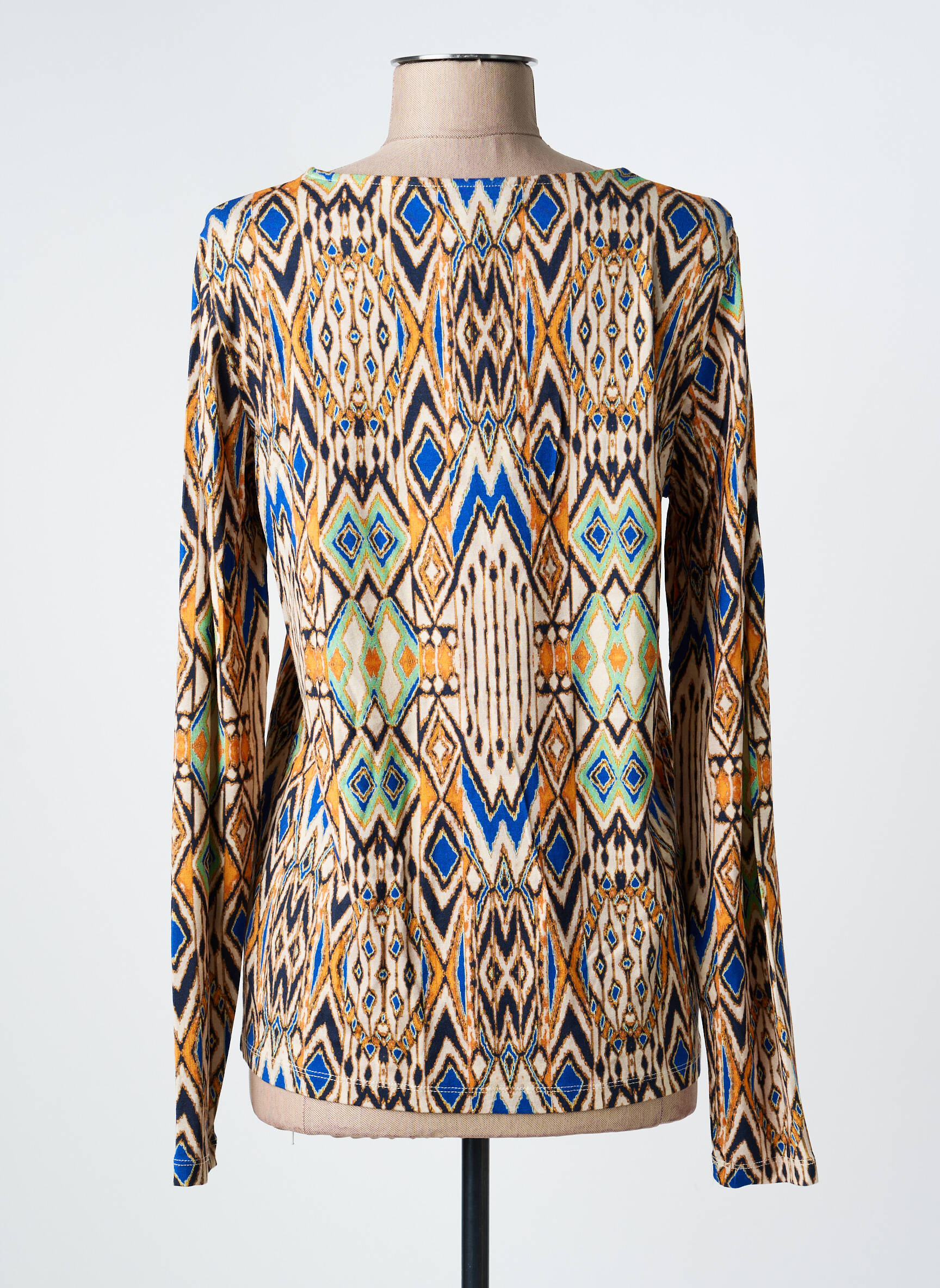 Ne manquez pas ce T-shirt IVY BEAU pour femme, un vrai bon plan pour renouveler votre garde-robe à petit prix, avec son motif graphique inspiré des tendances ethniques, ses touches de bleu, d’orange et de vert qui apportent du pep’s à votre tenue et sa coupe confortable à manches longues idéale pour toutes les saisons. Ce top coloré, facile à associer, promet une allure moderne et originale sans vous ruiner.