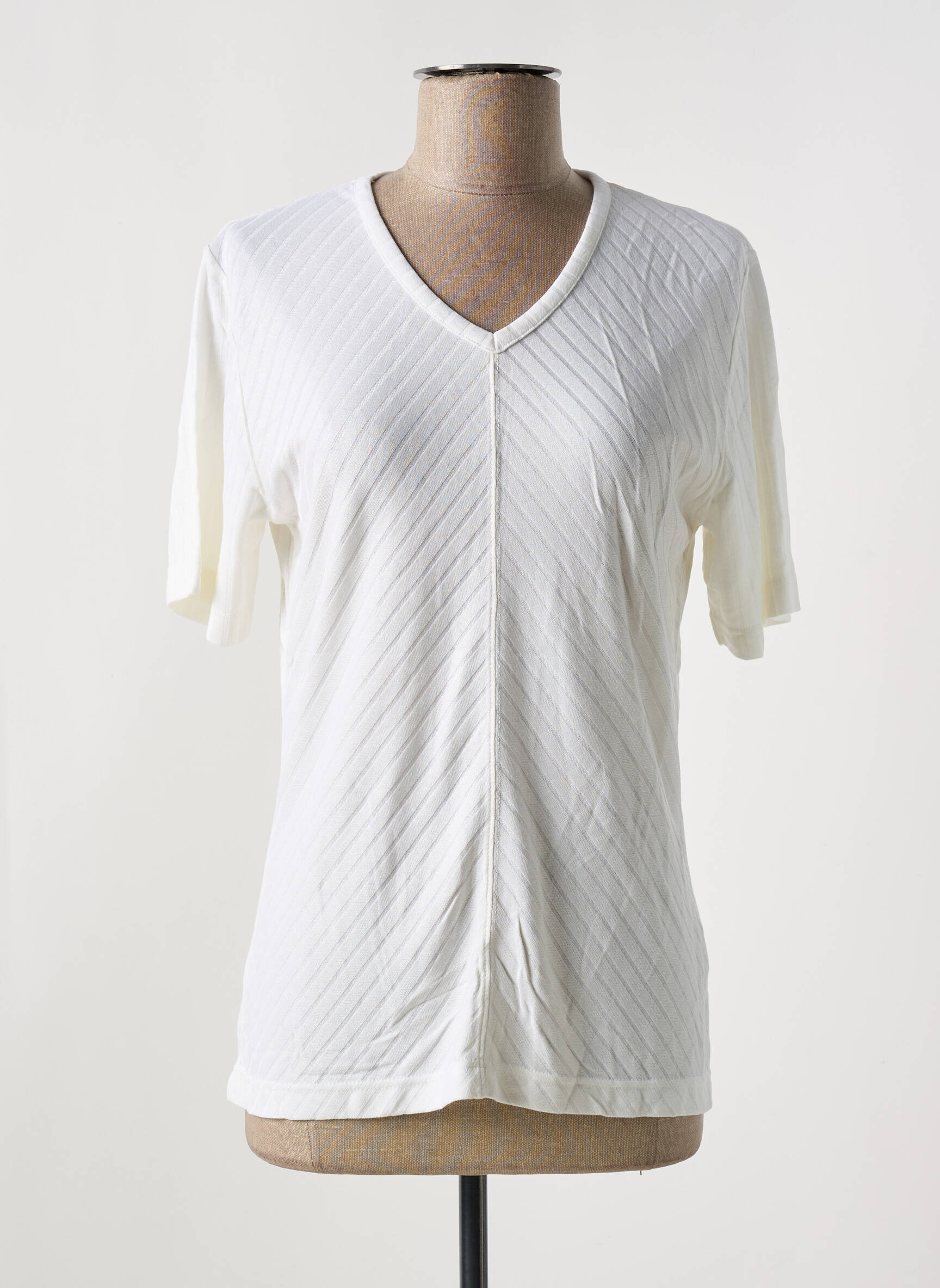 Et si la simplicité devenait votre plus bel allié ? Ce T-shirt JANE R. pour femme révèle toute sa finesse grâce à sa matière délicatement texturée de fines lignes diagonales qui apportent une subtile touche de relief. Son col en V et ses manches courtes offrent une allure à la fois décontractée et élégante, parfaite pour accompagner vos tenues du quotidien avec une discrète sophistication.