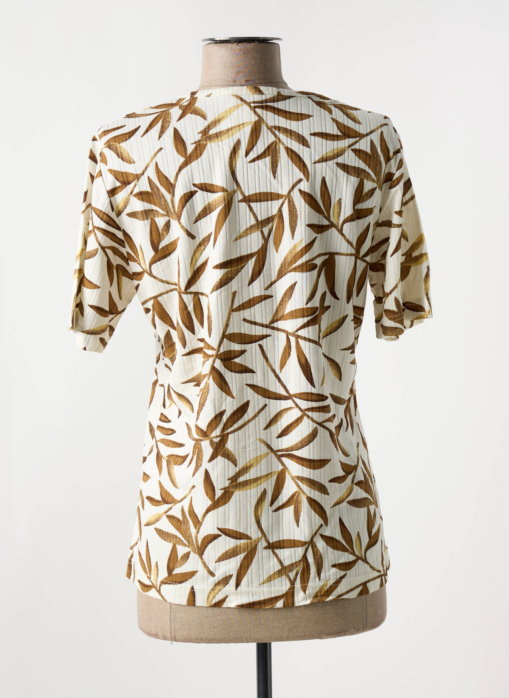 Comme un souffle d'automne capturé dans un vêtement, ce T-shirt JANE R. pour femme dévoile un délicat motif feuillagé aux teintes chaudes de brun sur un fond crème lumineux, offrant une élégance naturelle et apaisante. La coupe fluide et le col en V ajoutent une touche de féminité subtile et confortable, parfaite pour accompagner toutes vos envies de style casual chic.