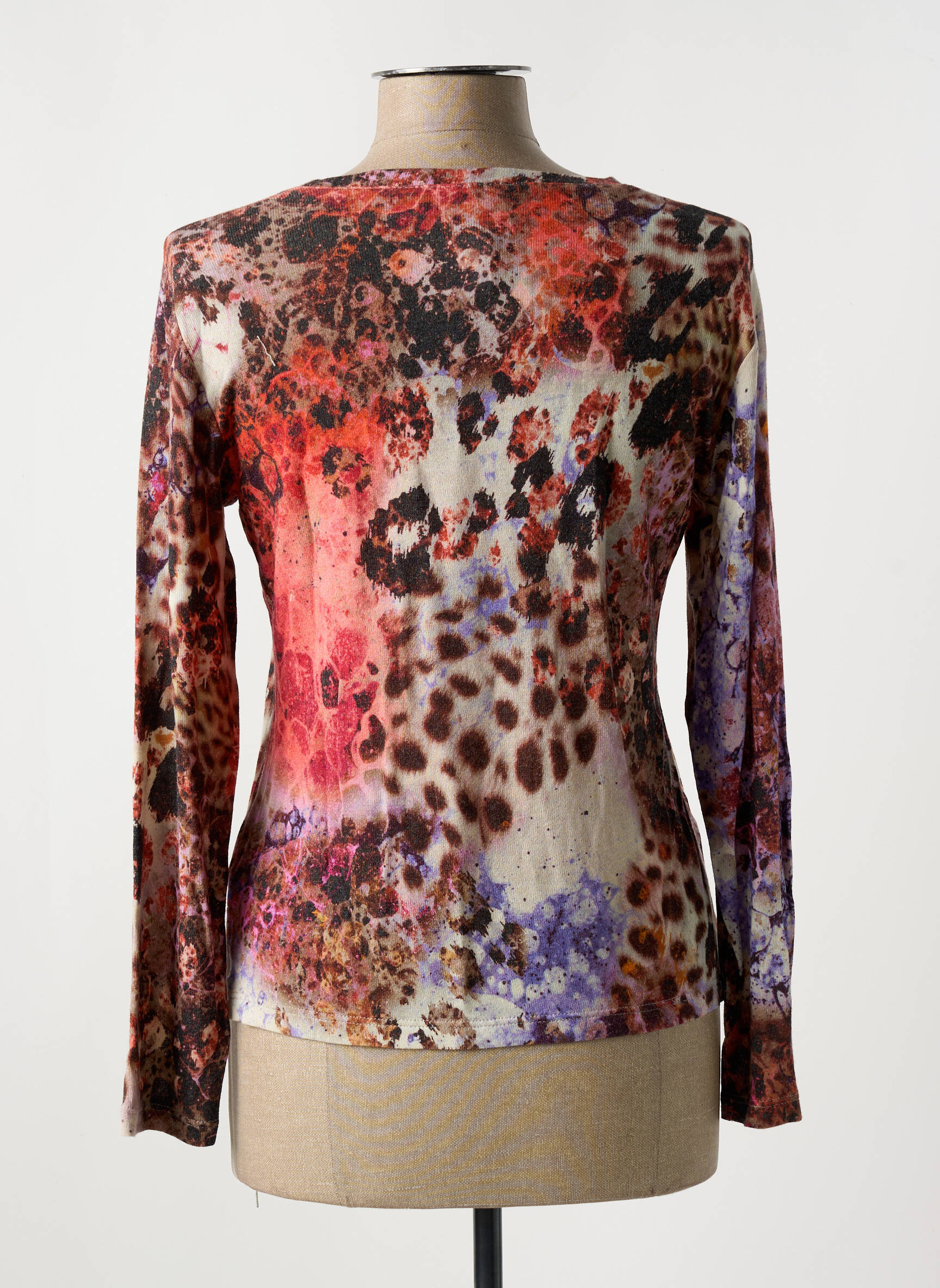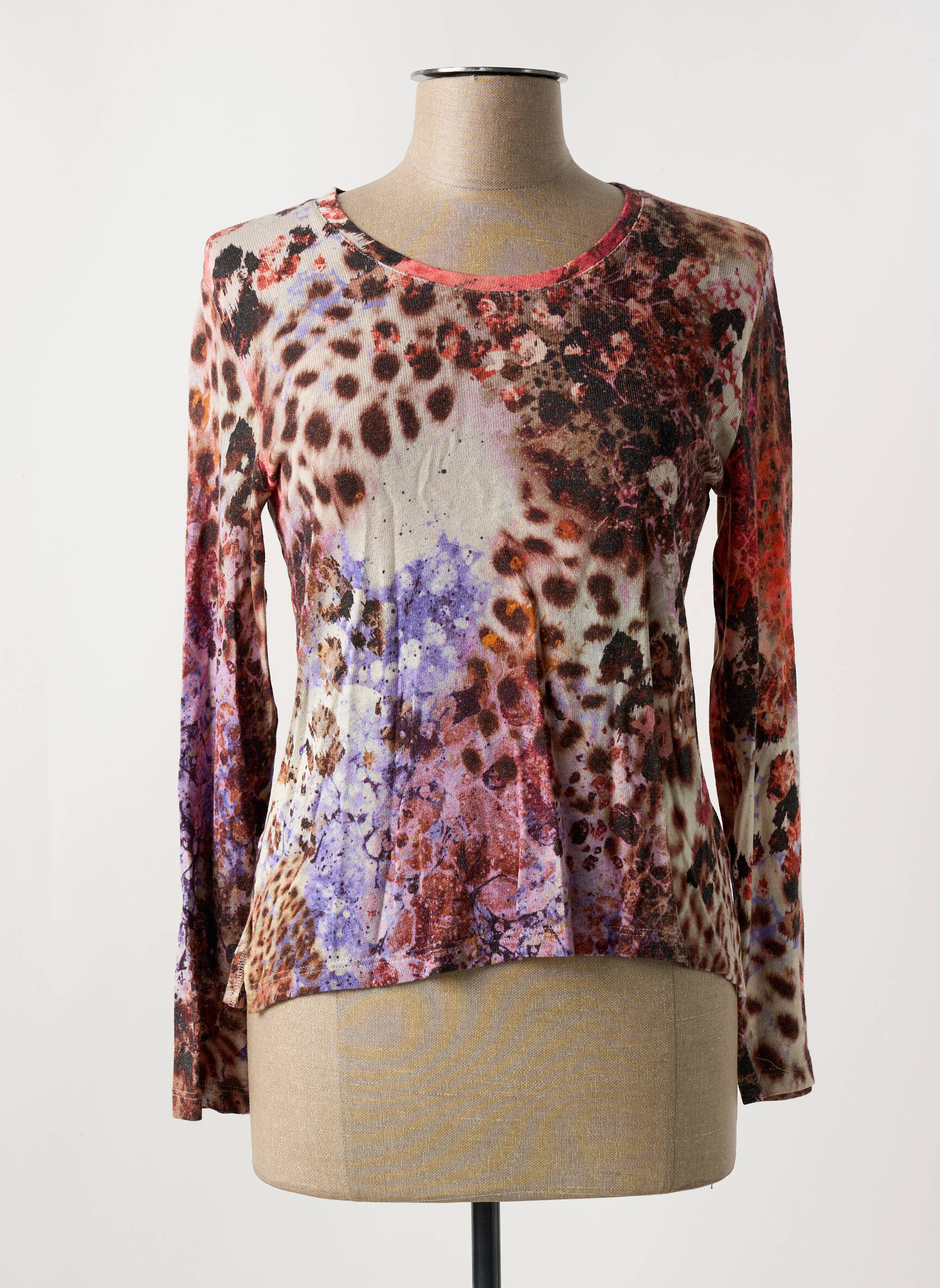 Profitez d’un véritable bon plan avec ce T-shirt JEAN GABRIEL pour femme au style unique, parfait pour ajouter une touche d’originalité à votre garde-robe sans vous ruiner. Sa coupe fluide s’associe à un imprimé audacieux mêlant motifs animaliers et fleurs dans des tons vibrants de violet, rouge et brun, pour un look à la fois tendance et facile à porter au quotidien. Voilà une pièce idéale pour celles qui aiment mixer confort et originalité tout en réalisant de belles économies sur une pièce forte de marque.