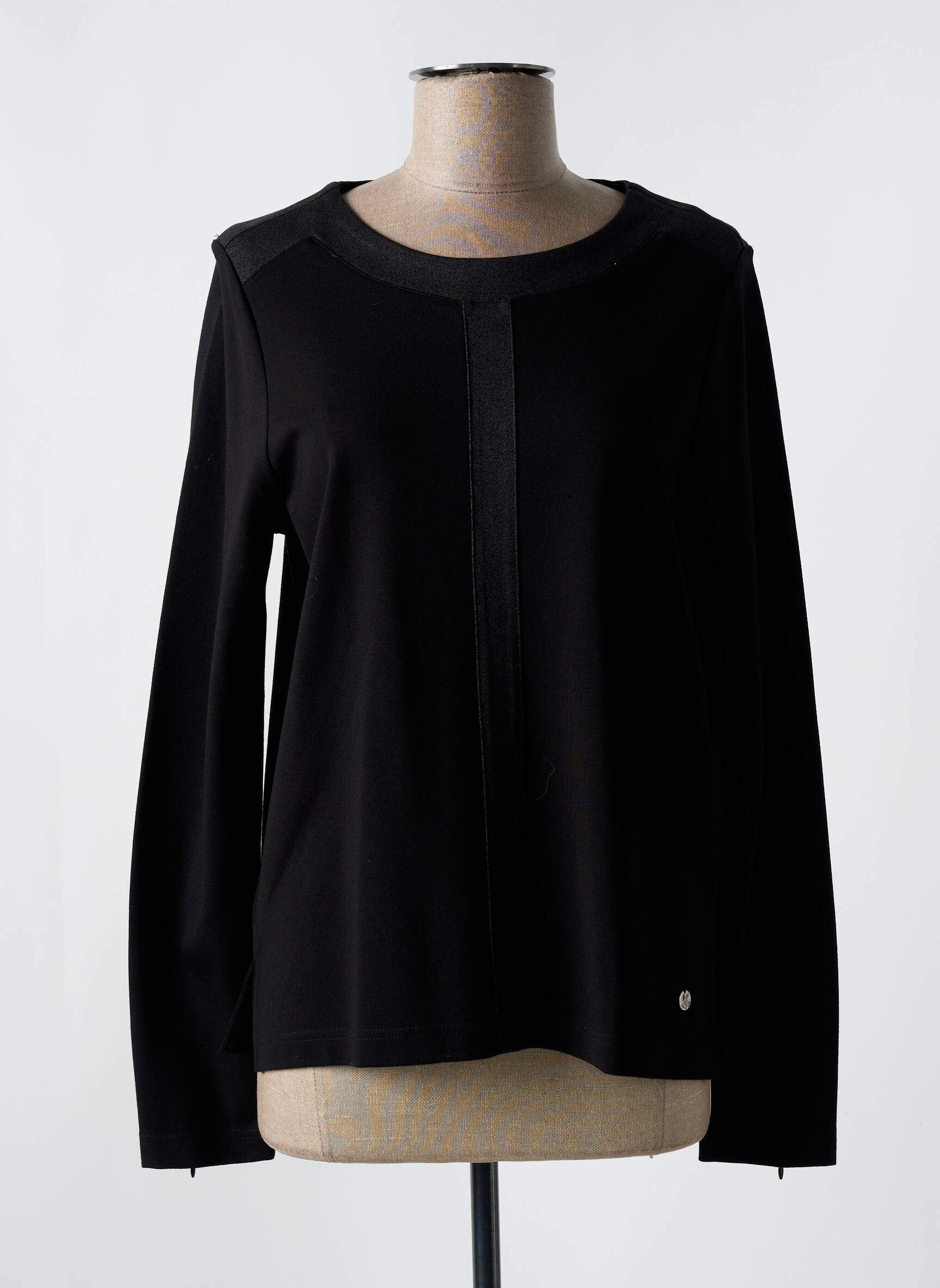 Imaginez un T-shirt qui se fait discret tout en captant les regards : ce modèle noir de JOY OF LIFE pour femme joue la carte de la sobriété sophistiquée avec sa coupe droite et ses manches longues qui épousent élégamment la silhouette, souligné par un liseré vertical ton sur ton central qui apporte une touche moderne et raffinée.