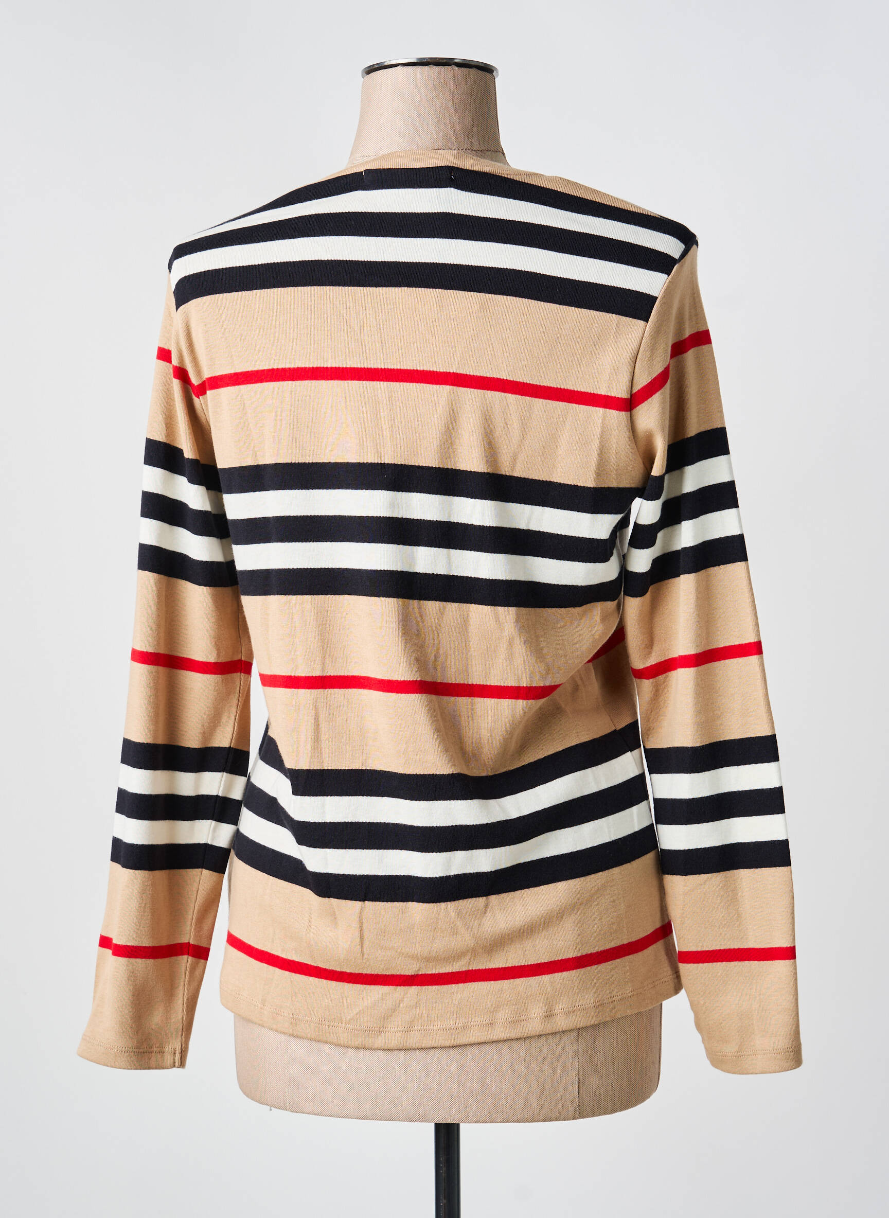 Craquez pour ce T-shirt femme de la marque KALISSON, une pièce tendance à prix mini qui allie élégance et confort pour un look moderne sans se ruiner. Son motif rayé aux couleurs beige, noir, blanc et rouge apporte une touche dynamique et raffinée à vos tenues du quotidien tout en vous offrant l’opportunité de faire des économies sur une marque reconnue.