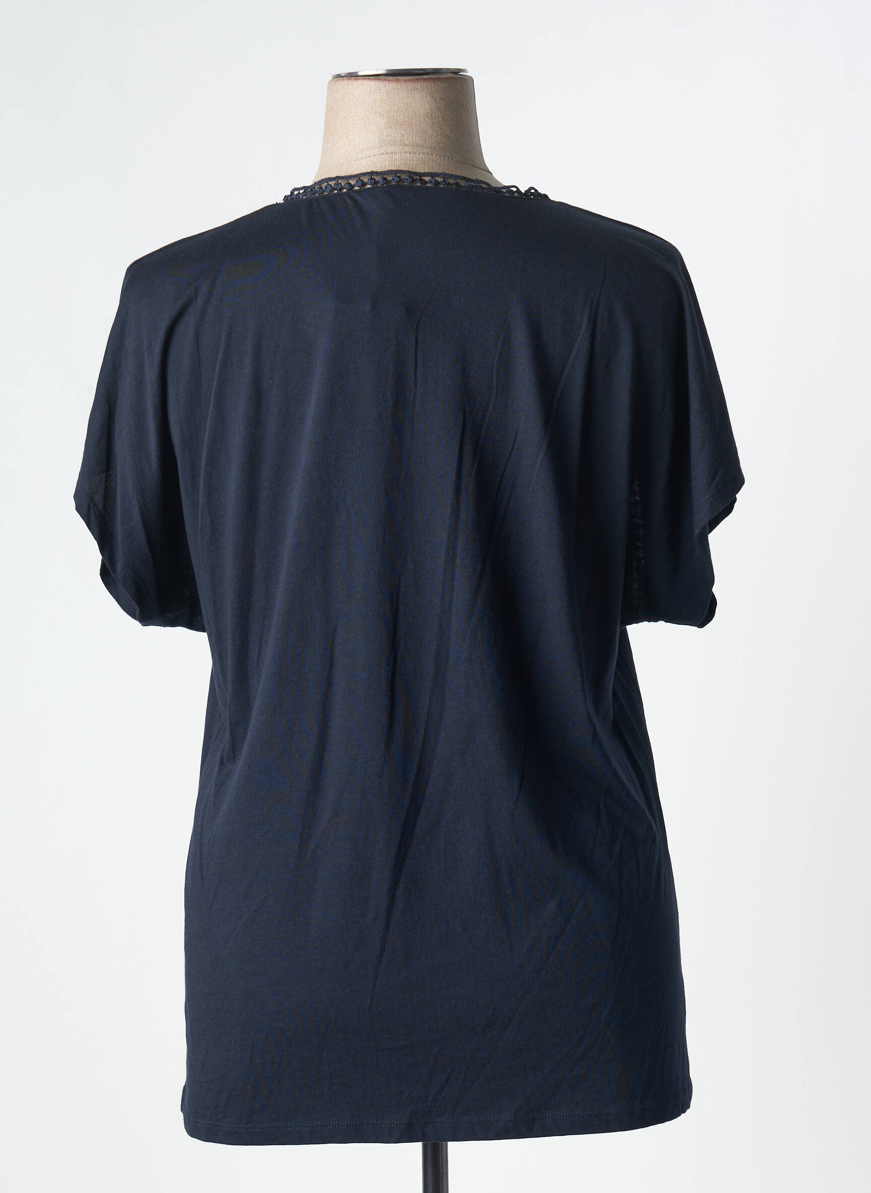 Profitez d’un bon plan mode avec ce T-shirt femme de la marque KATMAI, une pièce chic à petit prix qui valorise votre dressing sans vous ruiner. Sa coupe légèrement évasée s’associe à des manches courtes et un joli décolleté V souligné de détails ajourés raffinés, pour une touche d’élégance discrète au quotidien. Ce T-shirt bleu marine facile à porter s’adapte à toutes les envies et promet confort et style à prix malin.