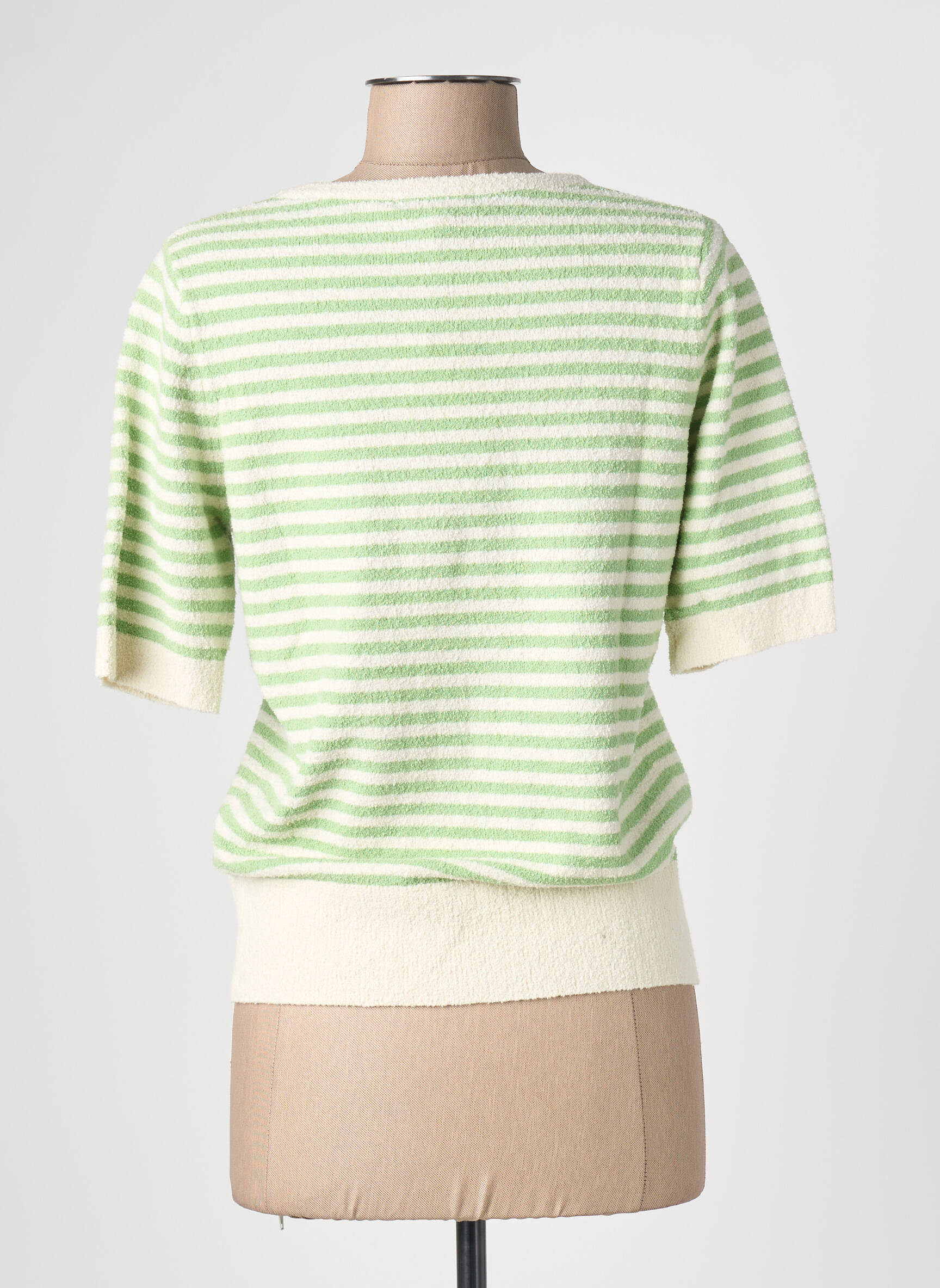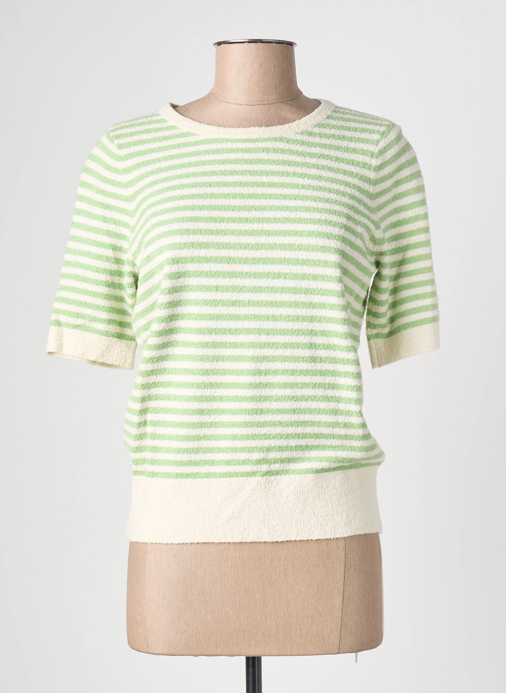 Craquez pour ce T-shirt KING LOUIE pour Femme à prix mini et offrez-vous un look frais et tendance sans vous ruiner. Son motif rayé vert clair et blanc illumine votre tenue, tandis que sa coupe confortable et ses finitions côtelées aux manches et à la taille ajoutent une touche casual chic idéale pour le quotidien. Profitez de ce bon plan pour allier style unique et économie sur une pièce facile à porter et à associer.