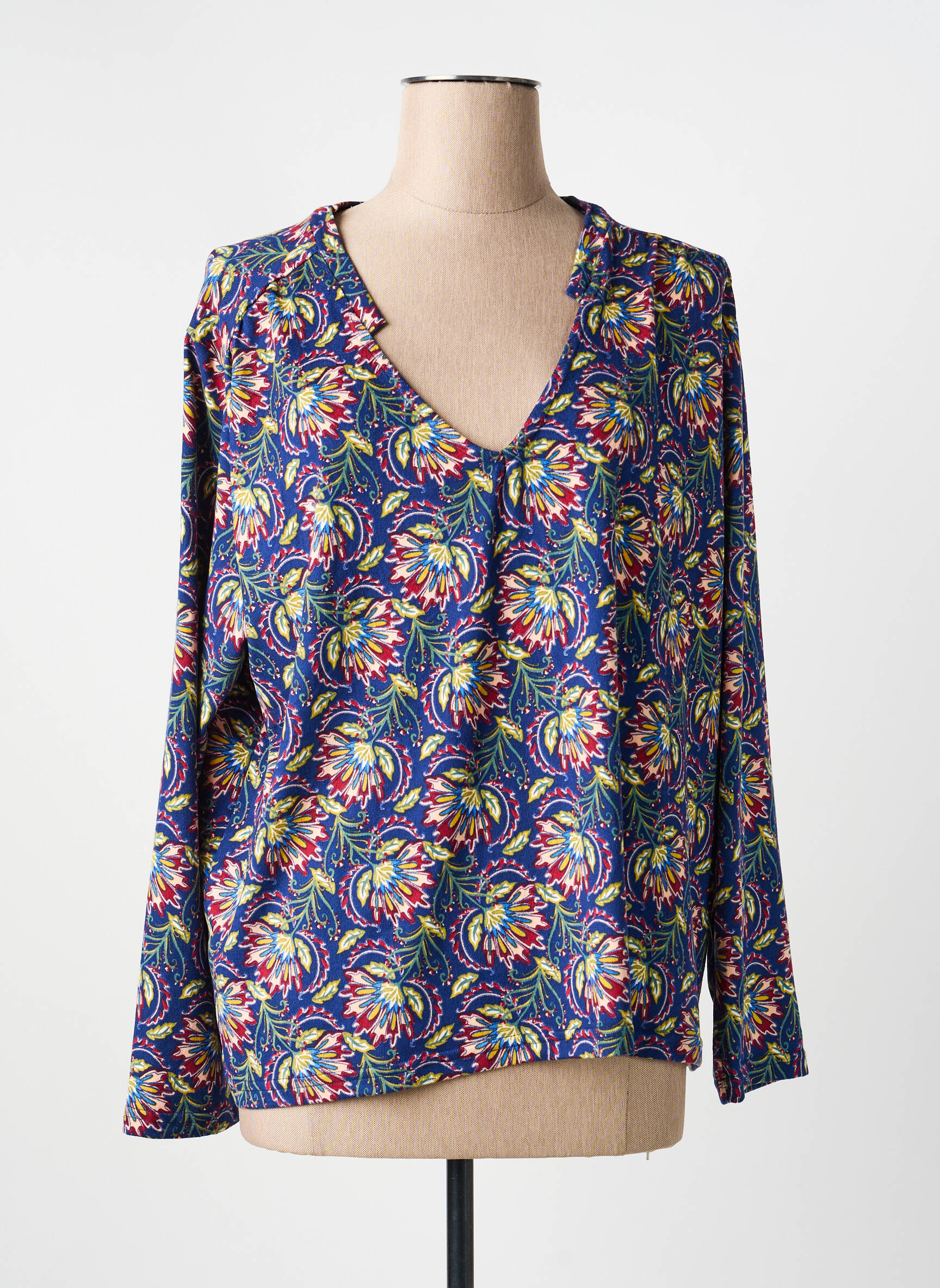 Profitez d’un bon plan mode avec ce T-shirt LA FIANCÉE pour femme, qui propose une élégance colorée sans se ruiner. Son motif floral multicolore, dynamisé par des tons bleu, jaune, rouge et vert, apporte une touche vive et originale à votre look, tandis que la coupe fluide et l’encolure en V délicatement fendue mettent en valeur votre féminité avec confort et raffinement. Ce modèle à manches longues, parfait en toutes saisons, est idéal pour celles qui cherchent à se faire plaisir à petit prix tout en affirmant leur style.
