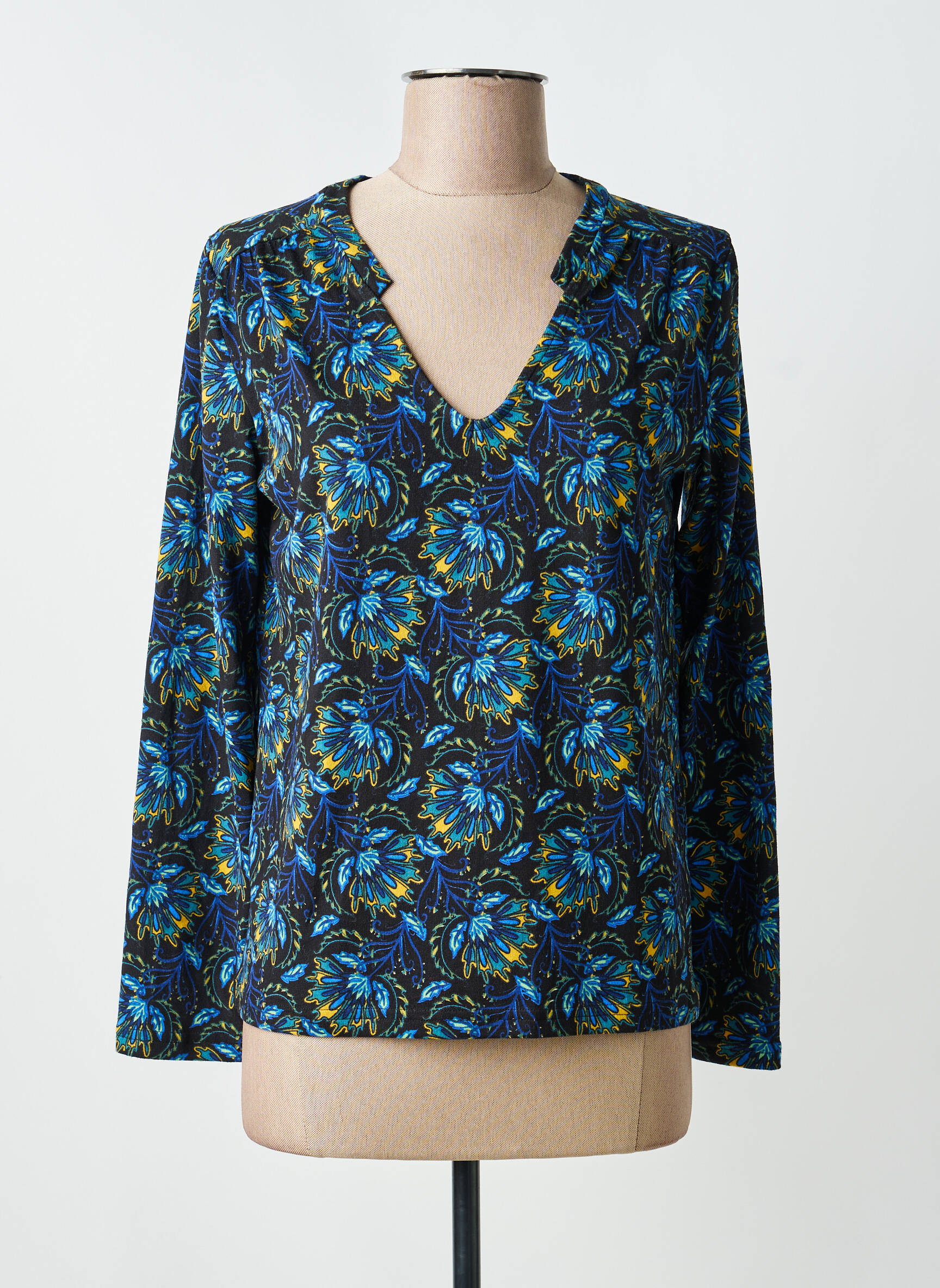 Craquez pour ce T-shirt femme de la marque LA FIANCÉE, une pièce tendance à prix mini idéale pour donner du peps à votre dressing sans vous ruiner. Son motif fleuri aux nuances bleues et jaunes apporte une touche de fraîcheur et de fantaisie, tandis que son encolure originale met subtilement en valeur le décolleté. Polyvalent et confortable, il est parfait pour profiter d’un look stylé au quotidien tout en réalisant de belles économies.