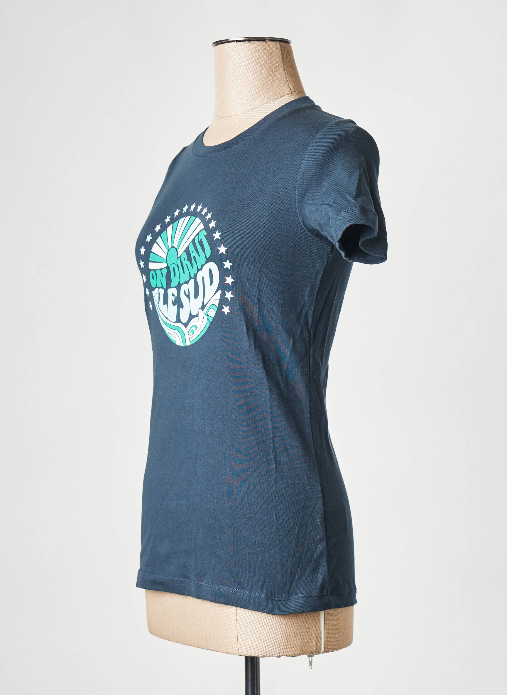 Profitez d'une véritable affaire avec ce T-shirt LA PETITE FRANÇAISE pour femme, à prix mini, qui affiche un design tendance avec son imprimé "On dirait le Sud" entouré d'étoiles sur un joli fond bleu profond pour un look casual et stylé à moindre coût.