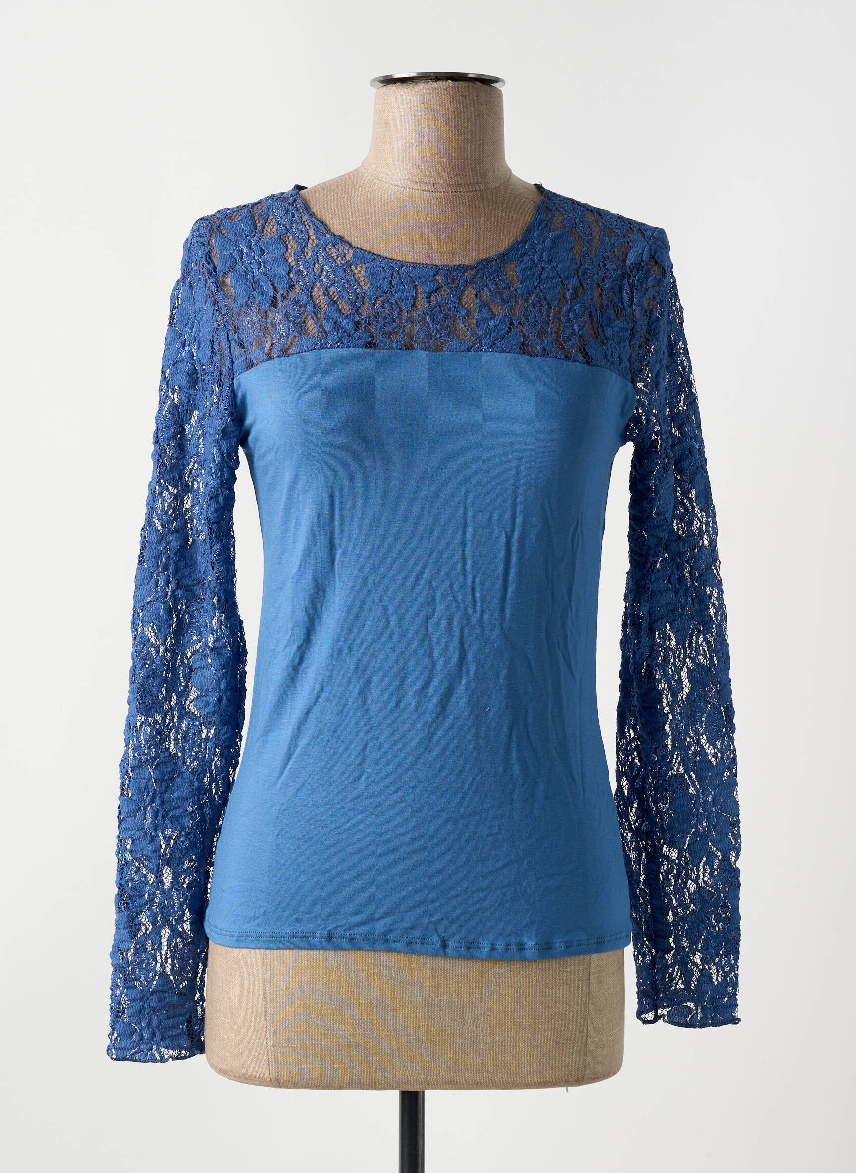 Craquez pour ce T-shirt femme LE BOURGET à prix mini, parfait pour vous offrir une touche de raffinement sans vous ruiner. Son coloris bleu profond est sublimé par un délicat jeu de transparence en dentelle sur le haut du buste et les manches longues, apportant une note élégante et actuelle à vos tenues du quotidien. Profitez d’un véritable bon plan pour allier style et économie avec cette pièce chic et féminine.