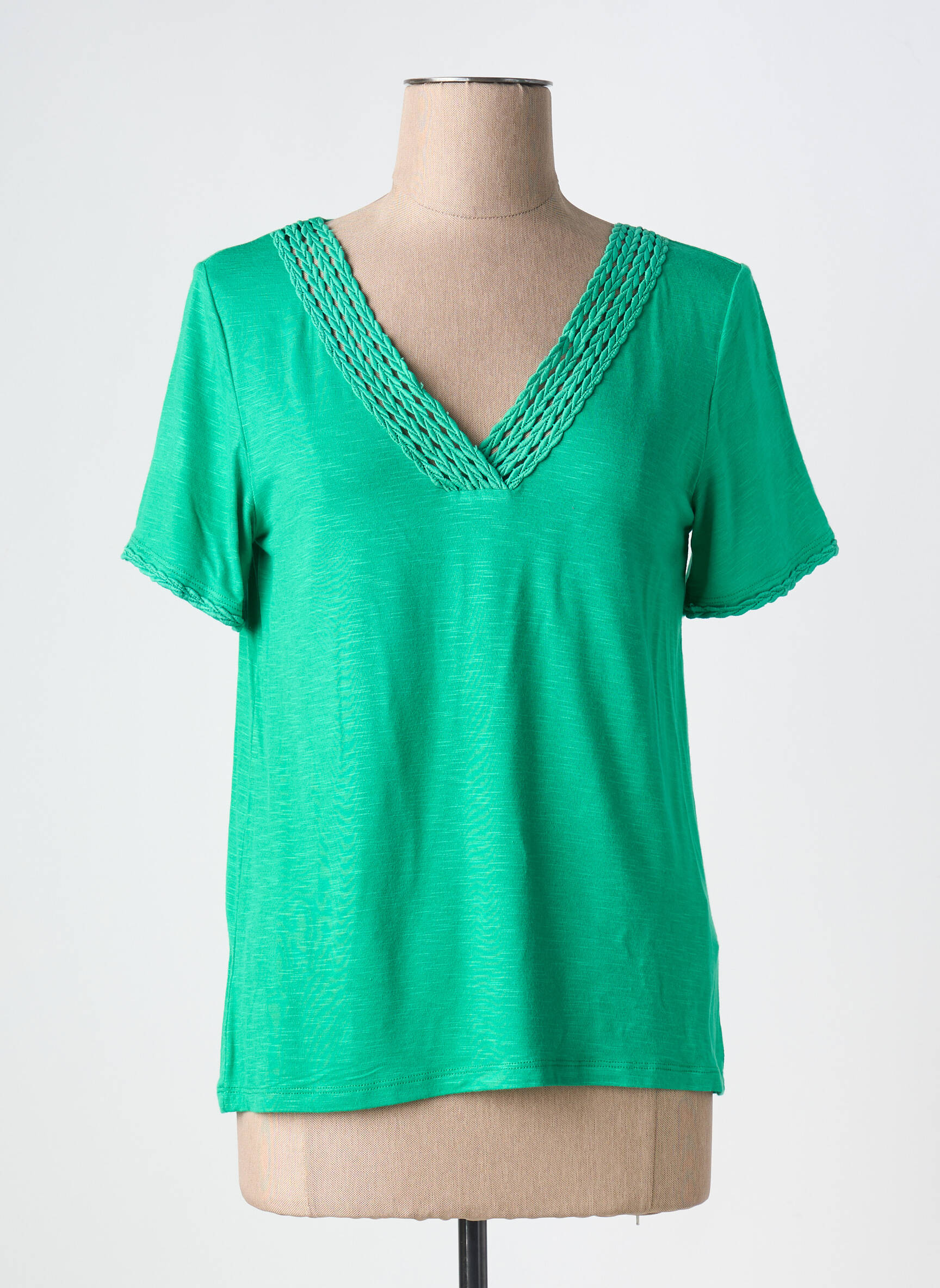 Craquez pour ce T-shirt femme signé LEO & UGO à prix cassé, parfait pour apporter une touche de fraîcheur à votre dressing sans vous ruiner. Sa coupe sobre et féminine est sublimée par un joli décolleté en V agrémenté de délicats détails tressés, tandis que la couleur verte lumineuse promet un style moderne et facile à accorder en toutes occasions. Profitez d’une pièce tendance à petit prix, idéale pour dynamiser vos looks du quotidien tout en faisant des économies.