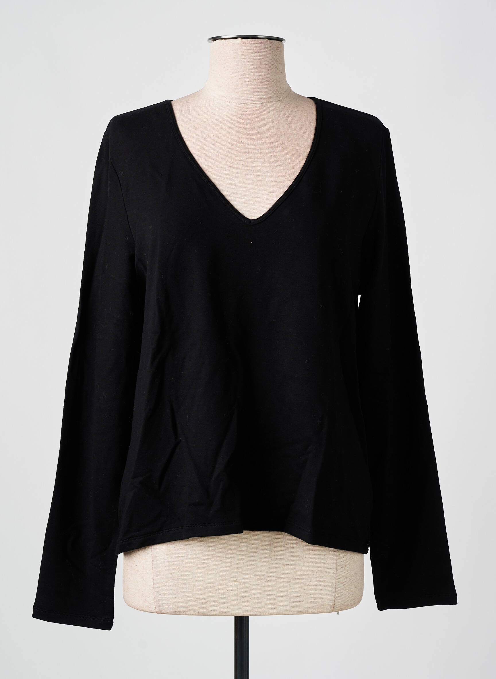 Voici l’occasion idéale de s’offrir un basique chic signé MAJESTIC FILATURES à prix tout doux. Ce T-shirt noir pour femme séduit par sa coupe ample et décontractée, son col en V féminin et sa texture douce agréable au porté, un choix parfait pour composer facilement toutes vos tenues du quotidien sans vous ruiner.