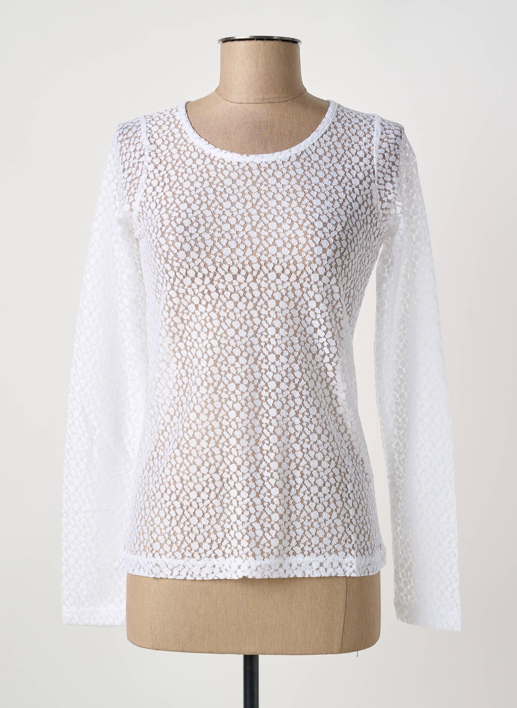 Craquez pour ce T-shirt femme MALOKA, une pièce tendance à prix mini idéale pour renouveler votre dressing sans vous ruiner. Avec sa coupe près du corps et sa matière ajourée délicate, ce modèle joue la transparence tout en affichant un joli motif géométrique ultra féminin. À saisir en déstockage pour ajouter une note élégante et originale à vos looks, sans compromis sur la qualité ou le style.