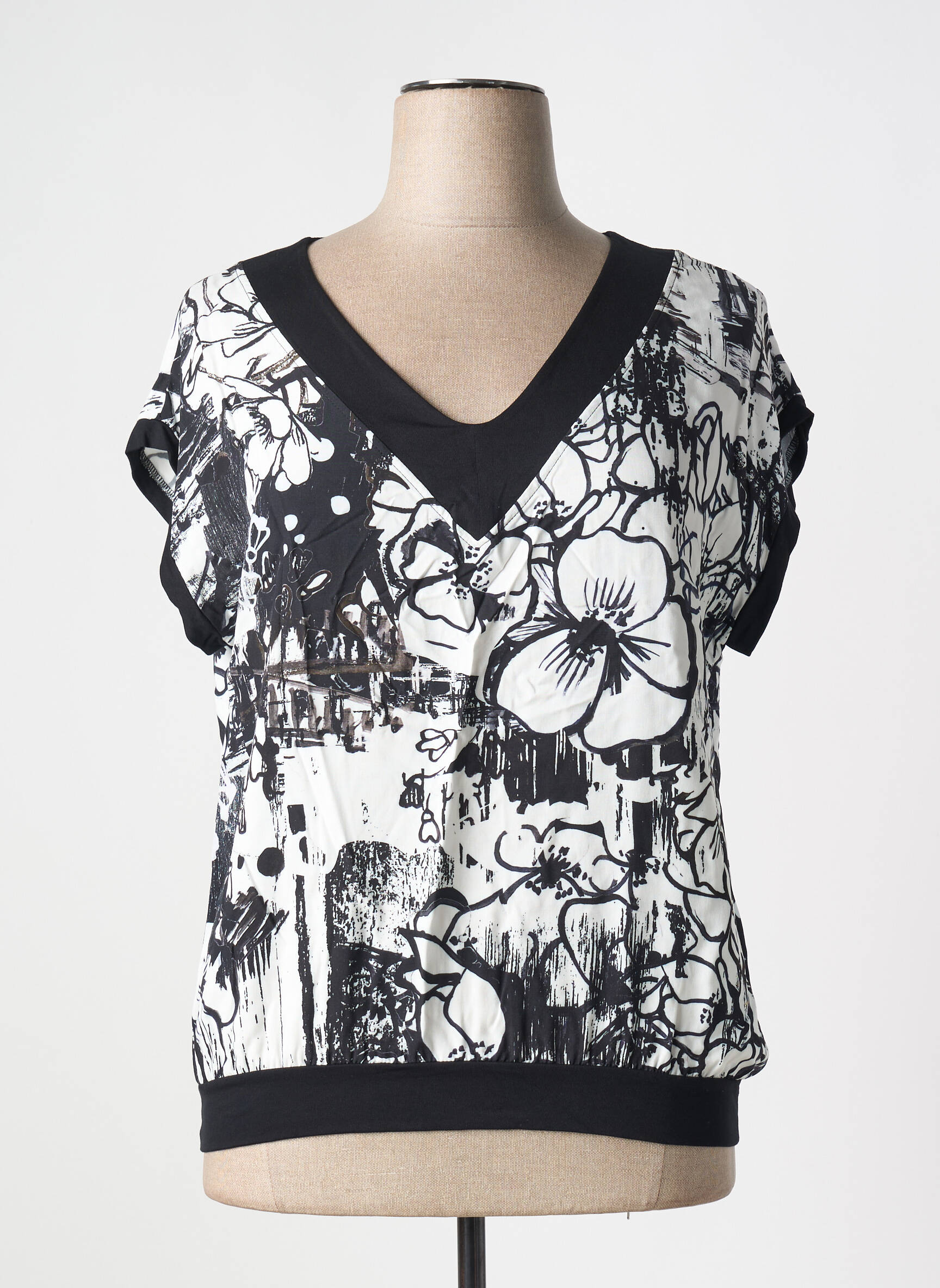 Craquez pour ce T-shirt femme de la marque Maloka à prix malin, une pièce chic à petit prix idéale pour rehausser votre dressing sans se ruiner avec son imprimé floral noir et blanc audacieux, sa coupe confortable et son col en V qui met joliment en valeur le décolleté.