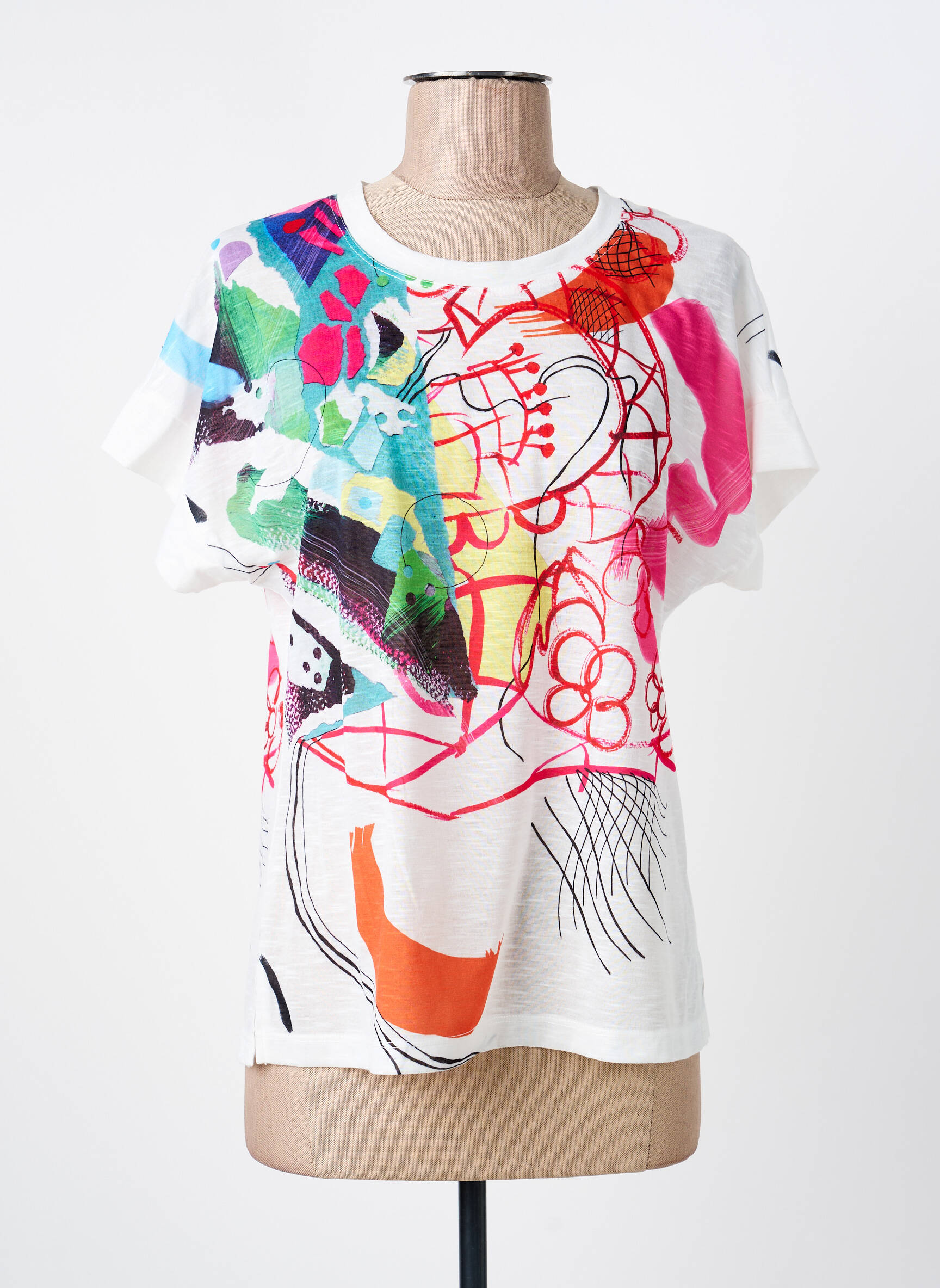 Profitez d'une offre exceptionnelle sur ce T-shirt femme de la marque MERI & ESCA, un véritable bon plan pour celles qui aiment allier style et économies. Avec ses motifs colorés et son imprimé artistique, ce modèle apporte une touche graphique et originale à votre dressing tout en restant facile à associer à vos tenues du quotidien. C’est le choix malin pour celles qui recherchent une pièce tendance à petit prix.