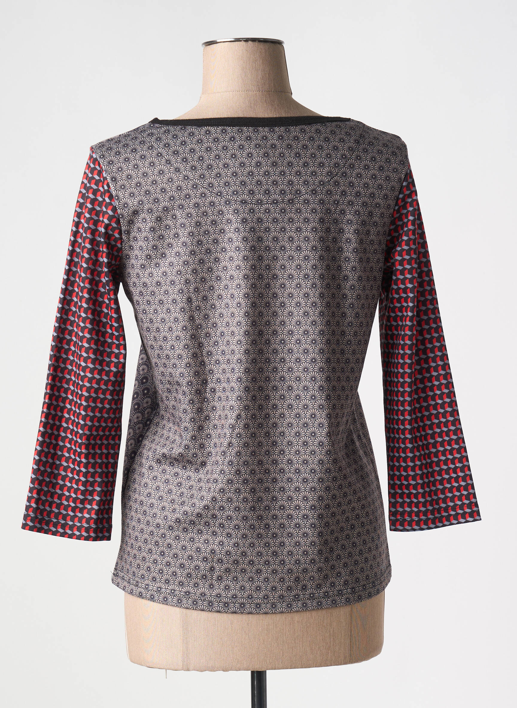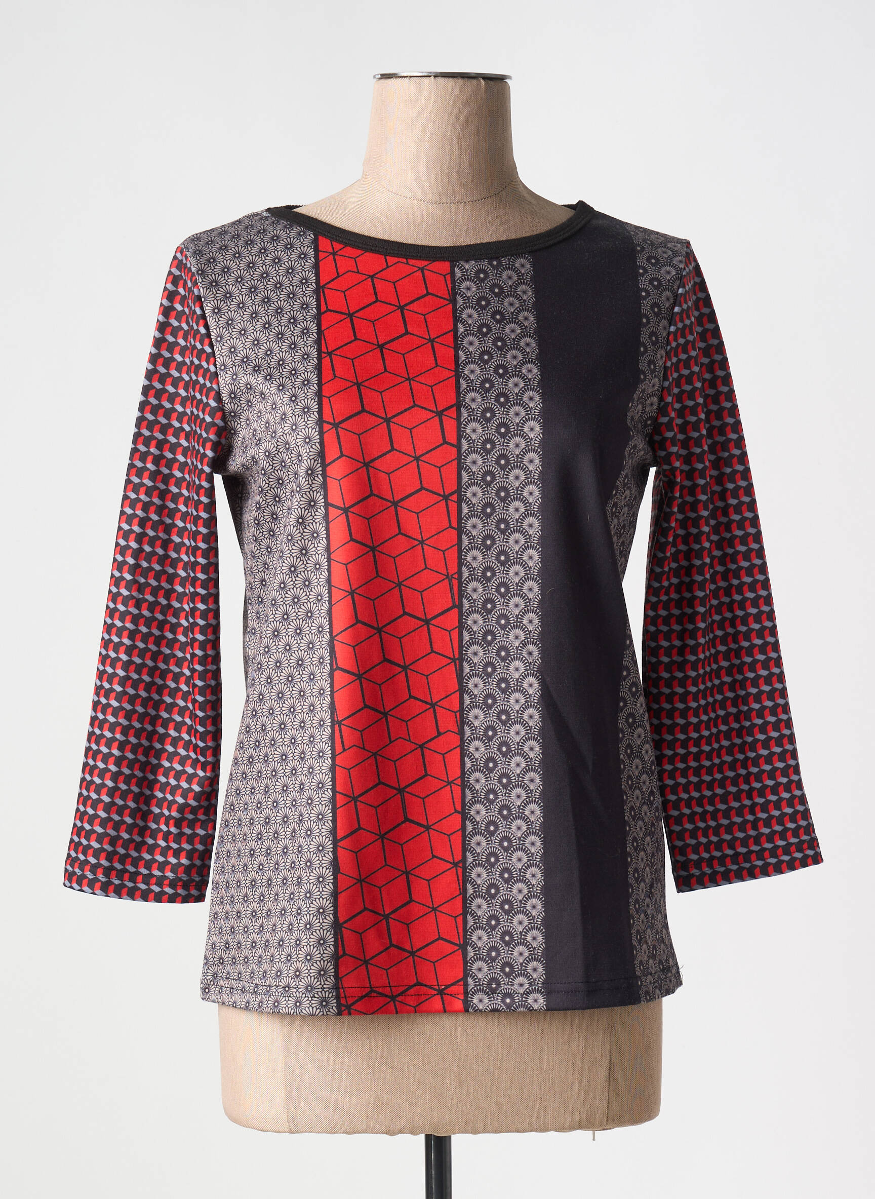 Profitez d’une vraie affaire mode avec ce T-shirt femme MISSING JOHNNY à prix tout doux, parfait pour ajouter une touche graphique à votre dressing sans vous ruiner. Ce modèle séduit par son mix d’imprimés géométriques en rouge, gris et noir qui apporte une note originale et tendance, tandis que ses manches trois-quarts et sa coupe confortable en font un choix idéal pour un style moderne au quotidien à petit prix.