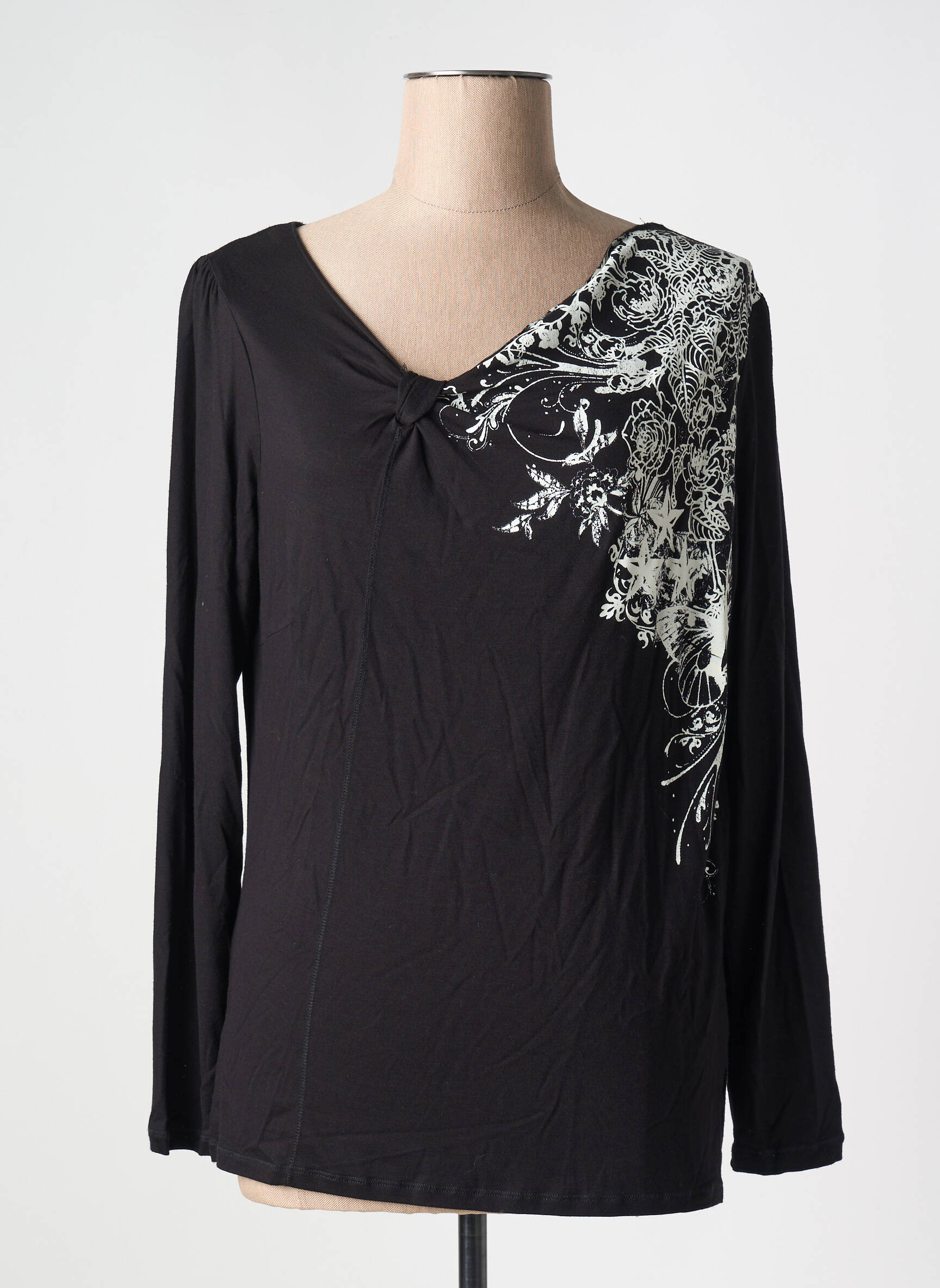 Craquez pour ce T-shirt MJ DE ATIAN pour femme, une vraie bonne affaire à prix tout doux pour apporter une touche d’originalité à votre garde-robe sans vous ruiner. Avec sa coupe moderne à manches longues et son col légèrement drapé, il met en valeur un élégant motif floral blanc sur une base noire, pour un look à la fois chic et facile à porter au quotidien. Idéal pour celles qui recherchent un haut tendance et abordable, parfait pour sublimer vos tenues tout en profitant des petits prix.