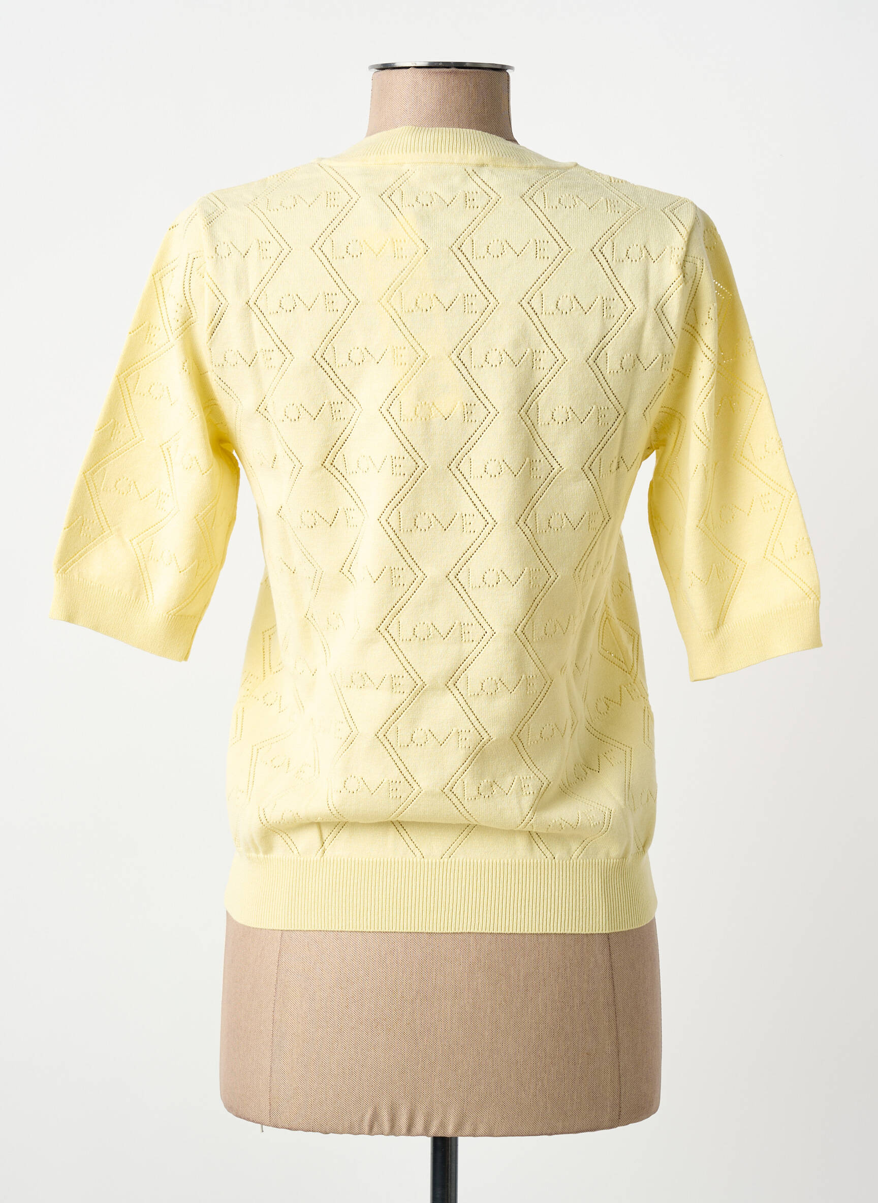 Profitez d’un vrai bon plan avec ce T-shirt MORGAN pour femme, à petit prix, qui séduit par son coloris jaune pâle lumineux et sa maille ajourée ornée du motif LOVE en relief. Ses manches mi-longues et sa coupe ajustée apportent une touche d’élégance casual, parfait pour rehausser votre garde-robe sans vous ruiner. Idéal pour celles qui souhaitent allier style et économie lors de leur shopping.