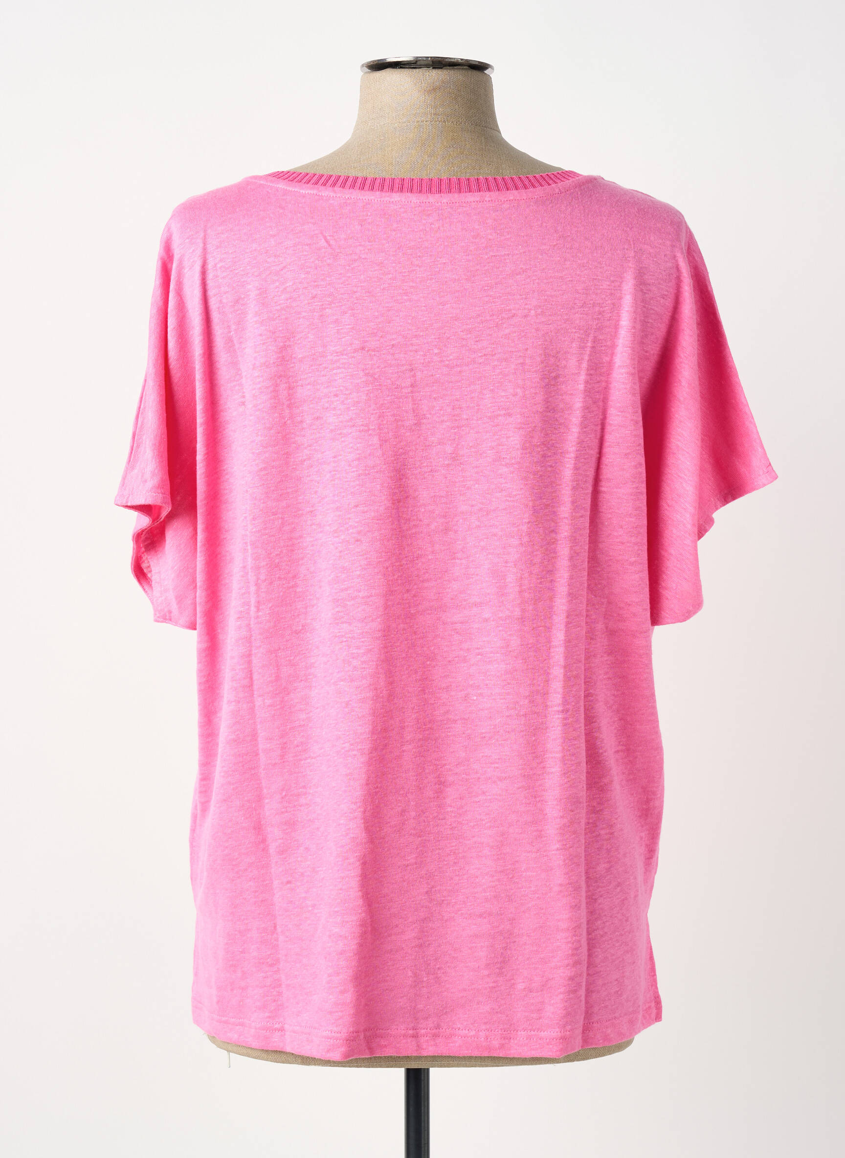 Ce T-shirt rose apportera une touche lumineuse à tous vos looks du quotidien, glissé simplement dans un jean taille haute pour une allure casual ou posé sur une jupe fluide pour jouer la carte féminine. Il s’accorde aussi bien avec un short qu’avec un pantalon clair ou un blazer structuré, pour varier les styles selon vos envies et la saison. Quelques accessoires colorés ou des baskets blanches suffiront à compléter votre tenue avec modernité et simplicité.