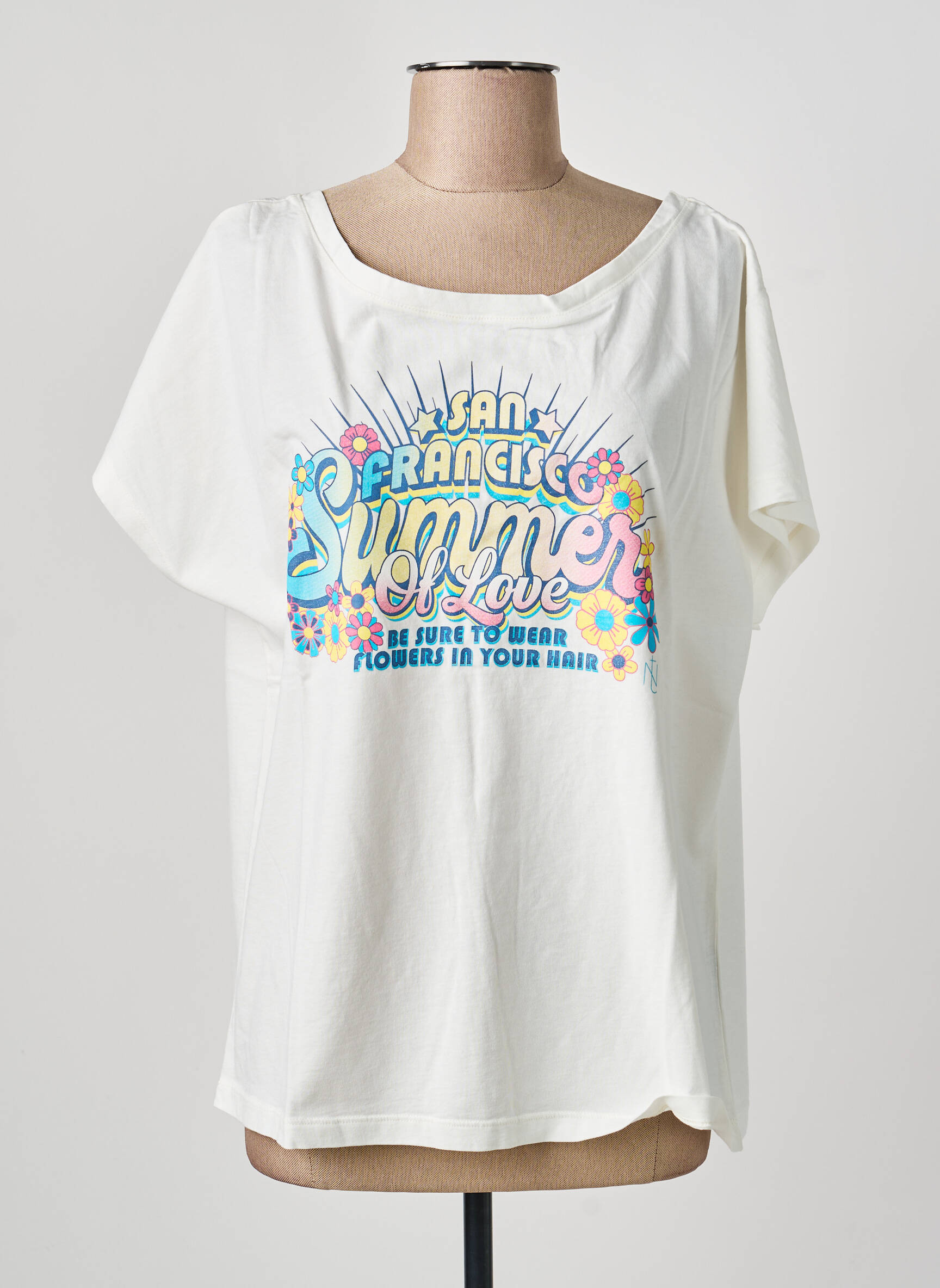 Profitez d’une vraie affaire avec ce T-shirt femme de la marque NINE TEES, proposé à prix tout doux pour apporter une touche rétro et colorée à votre dressing. Son motif « San Francisco Summer of Love » aux accents vintage et fleuris illumine vos tenues estivales tout en affichant un style décontracté et tendance, parfait pour donner du pep’s à votre look sans vous ruiner.