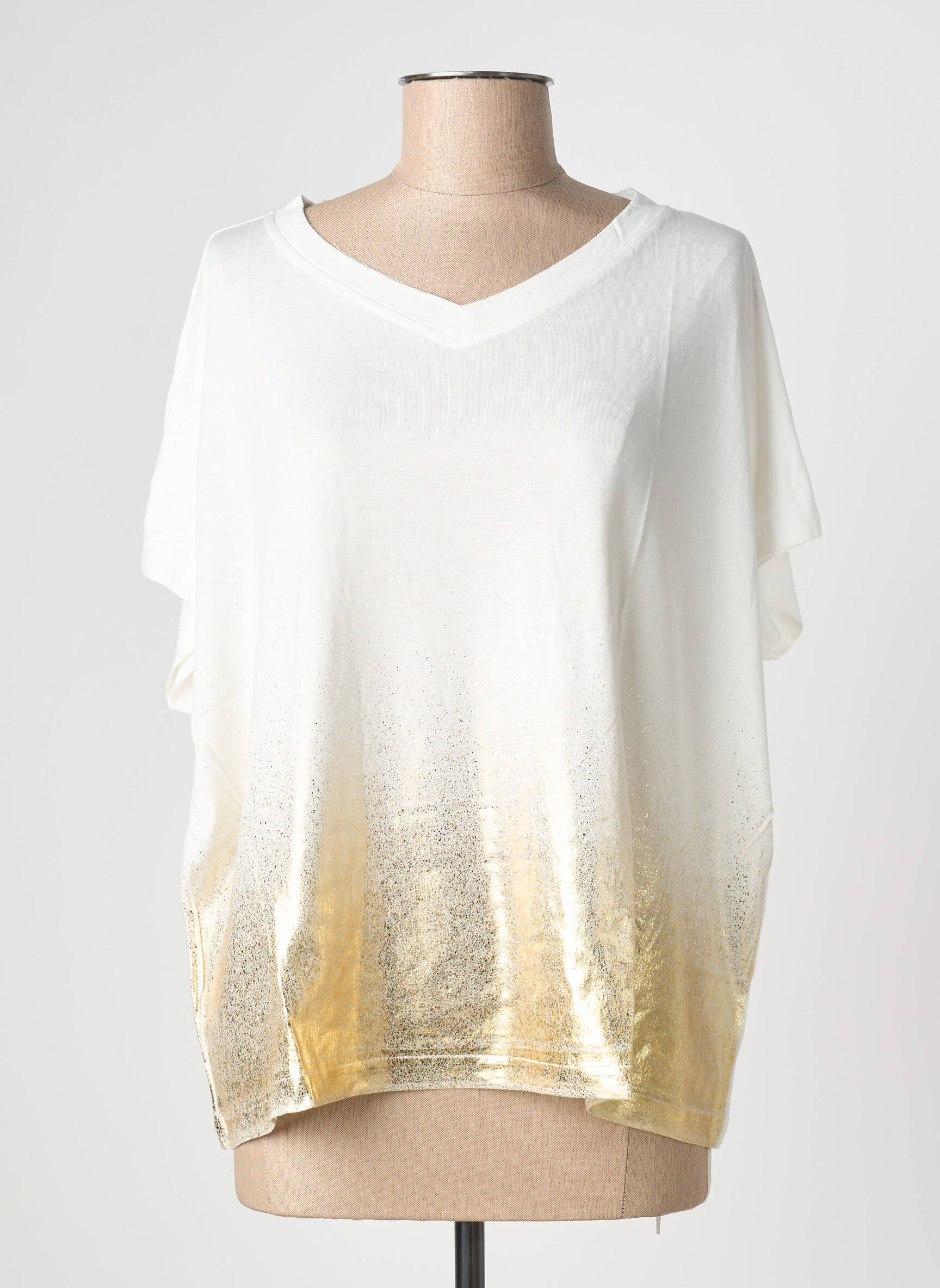 Profitez d’un bon plan mode avec ce T-shirt pour femme signé NINE TEES, au design moderne et lumineux parfait pour faire des économies sans compromis sur le style. Sa coupe fluide et son décolleté en V mettent la silhouette en valeur, tandis que l’effet dégradé doré à la base apporte une touche tendance et éclatante à votre tenue. Voilà une pièce facile à porter qui permet de dynamiser tous vos looks avec une allure chic, sans se ruiner.