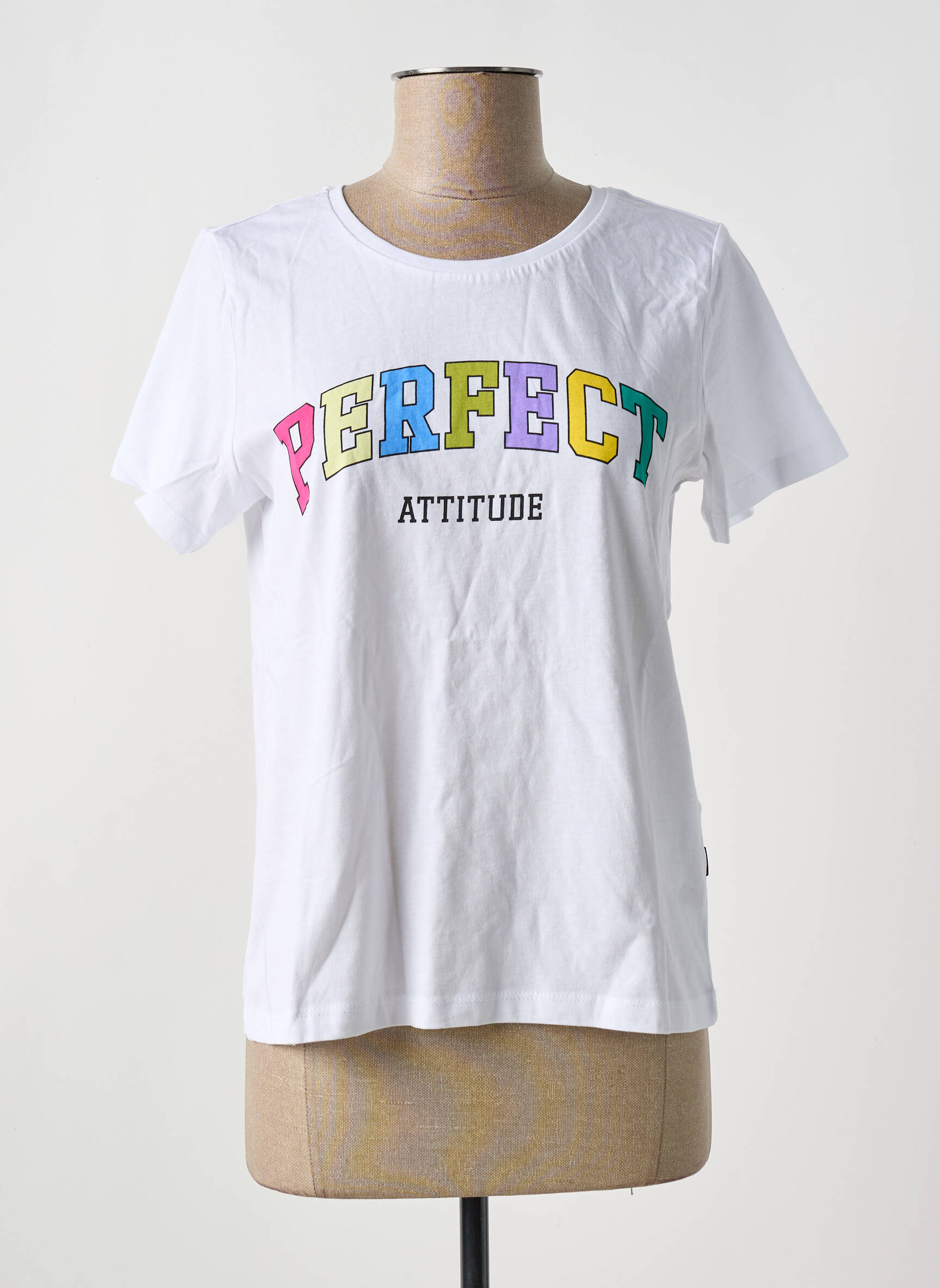 Craquez pour ce T-shirt signé NOISY MAY, une pièce tendance à prix tout doux qui apportera une touche de peps à votre dressing grâce à son inscription colorée "PERFECT ATTITUDE" sur fond blanc. Son design simple rehaussé par des lettres multicolores en fait un allié idéal pour des looks à la fois décontractés et stylés, sans vous ruiner.