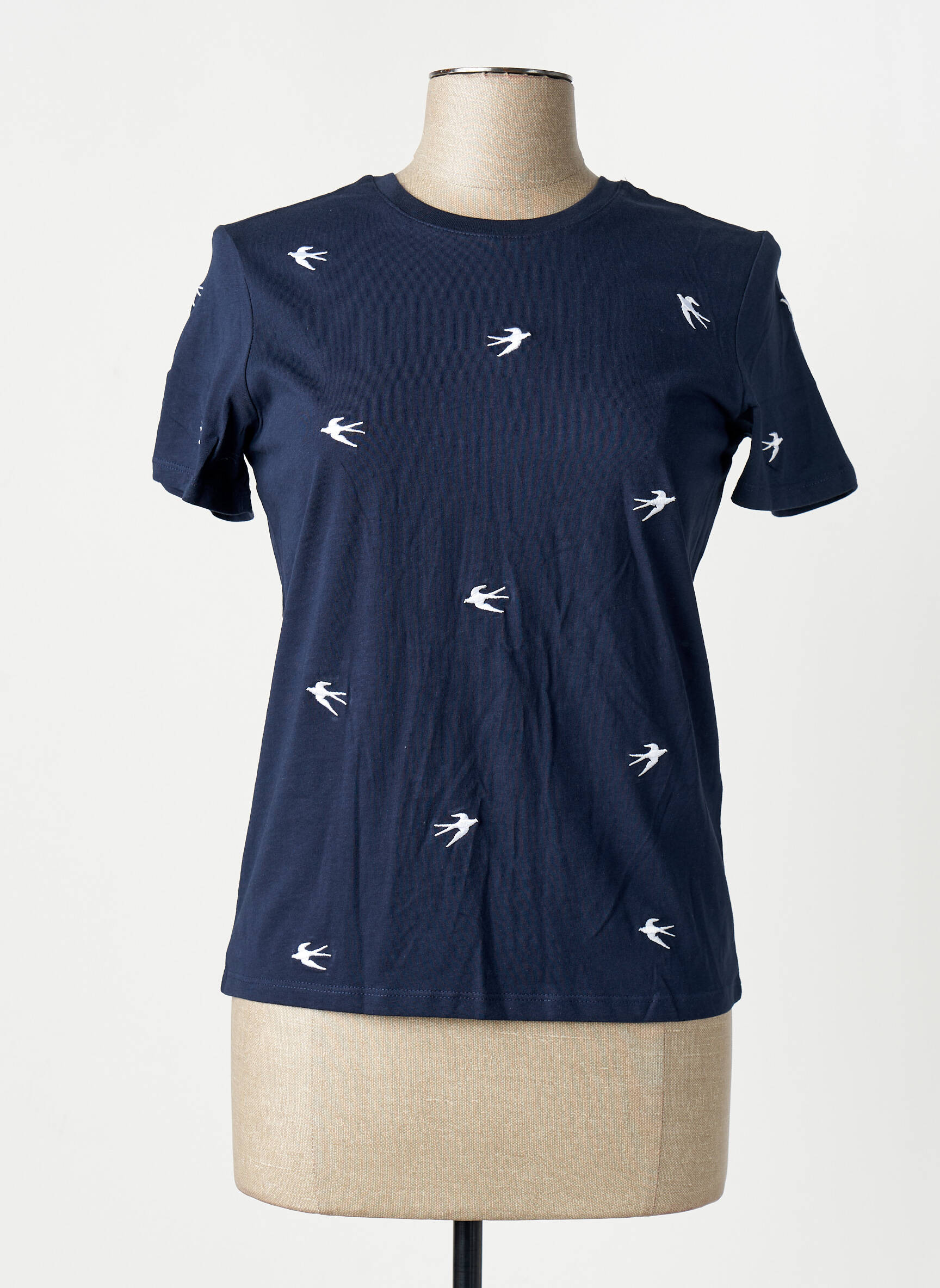 Profitez d’une offre irrésistible avec ce T-shirt ONLY pour femme, au look tendance et à prix doux. Ce modèle séduit par sa couleur bleu marine profonde rehaussée de petits motifs d’hirondelles blanches brodées qui apportent une touche légère et printanière à votre tenue. Facile à associer, il deviendra vite un indispensable du quotidien pour composer des looks décontractés sans se ruiner.