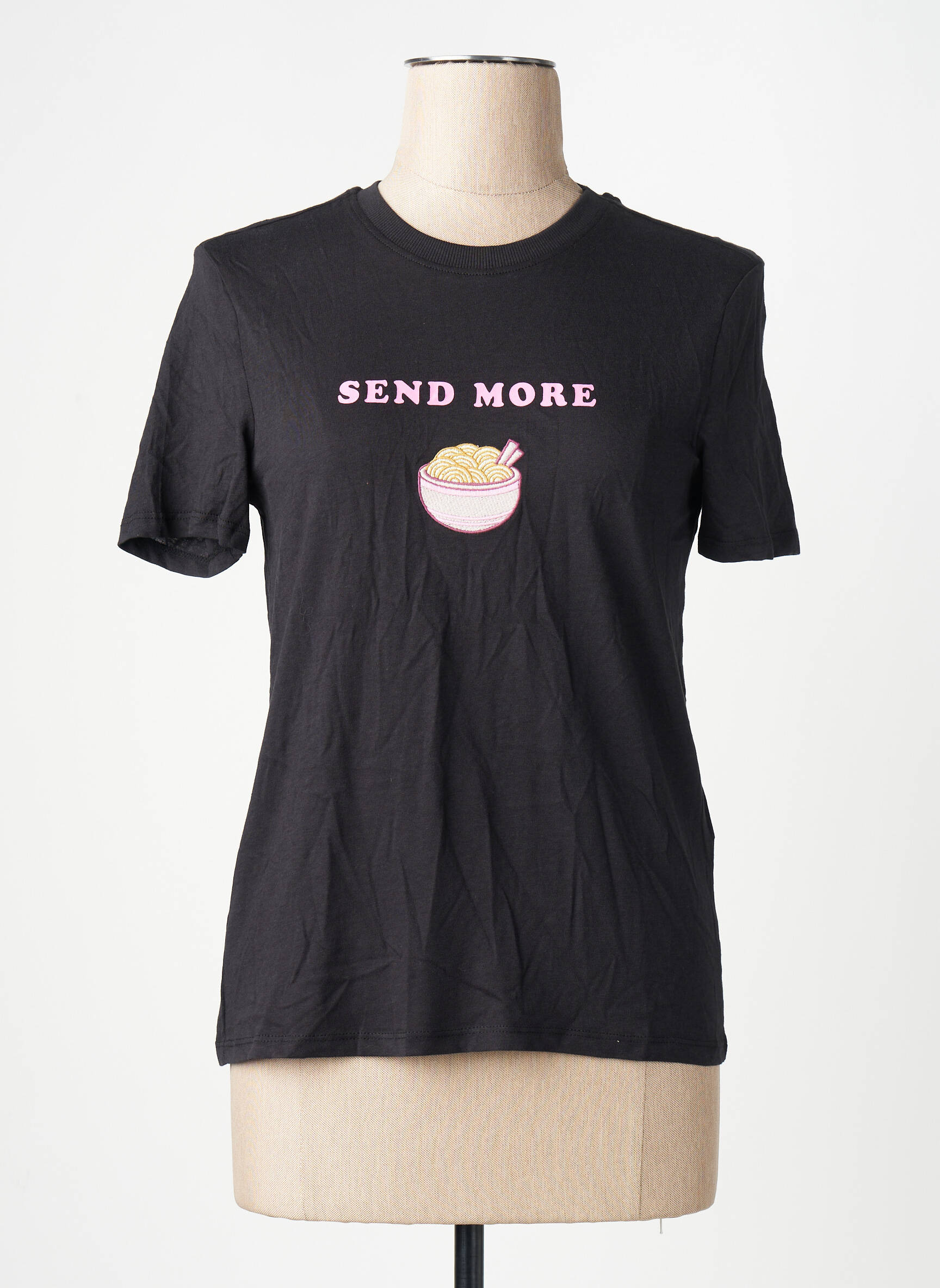 Craquez pour ce T-shirt ONLY pour femme, une pièce tendance à prix mini qui dynamisera votre garde-robe sans vous ruiner. Son coloris noir intemporel met en valeur une illustration gourmande accompagnée d’un message fun et décalé pour un style casual plein de personnalité. Parfait pour un look décontracté, ce T-shirt est l’atout sympa et économique à shopper d’urgence avant qu’il ne disparaisse !