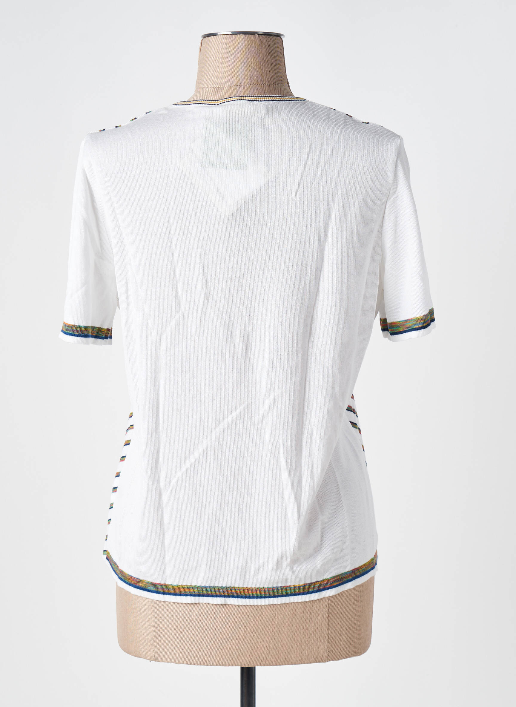 Profitez d’un bon plan mode en craquant pour ce T-shirt SAINT CHARLES pour femme, un choix malin pour renouveler votre dressing sans dépenser trop. Avec son imprimé de rayures multicolores dynamiques, il apporte une touche d’originalité à vos tenues du quotidien et sa coupe fluide assure un confort parfait pour la belle saison. Polyvalent, il se porte aussi bien avec un jean qu’avec une jupe pour un look casual tout en fraîcheur, tout en vous garantissant un prix mini sur un produit tendance signé SAINT CHARLES.
